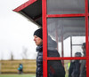 Það eru ekki margir mættir í stúkuna, þeir sem eru mættir eru ekki sumarlega klæddir. Sólin er þó aðeins farin að láta sjá sig sem er jákvætt.