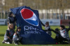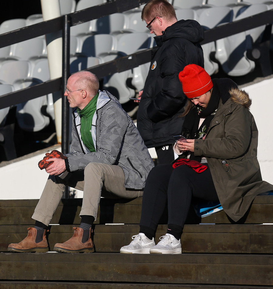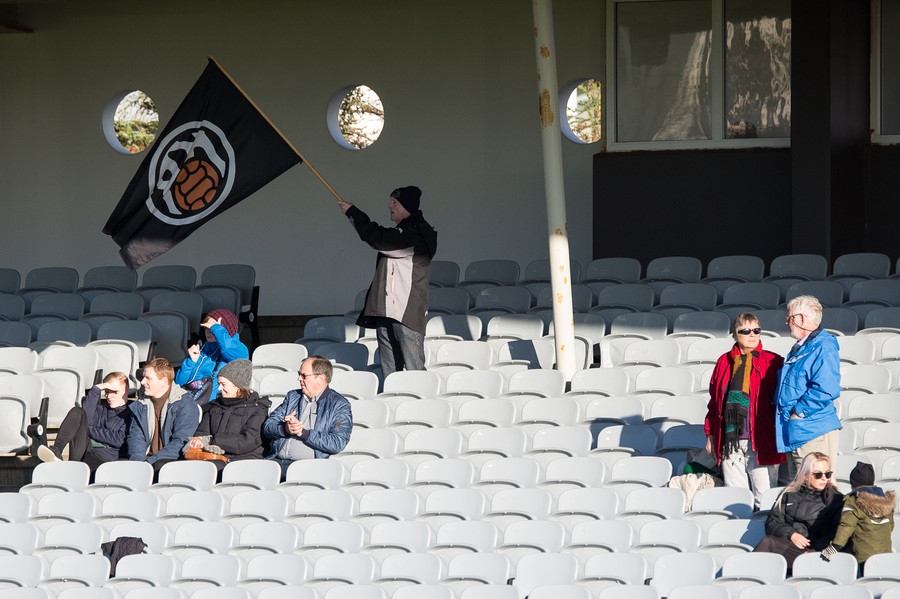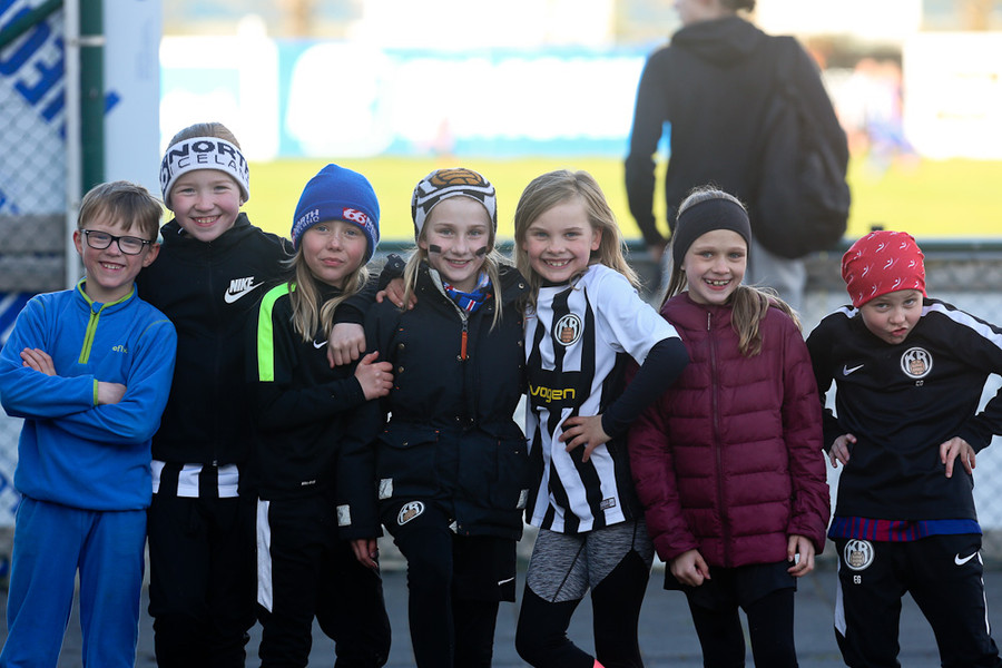 Fínasta fótboltaveður hér, sól og 10 stiga hiti samkvæmt vallarklukkunni.