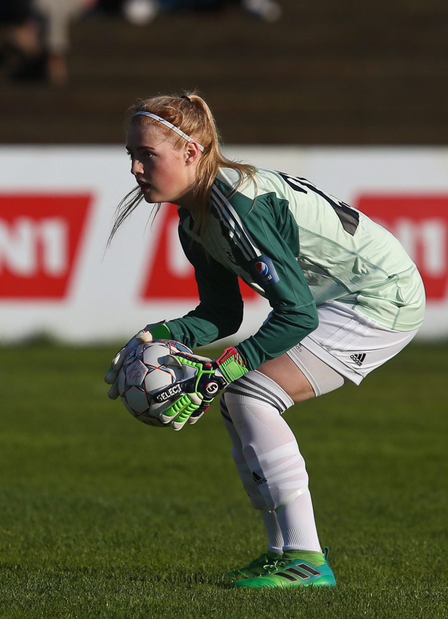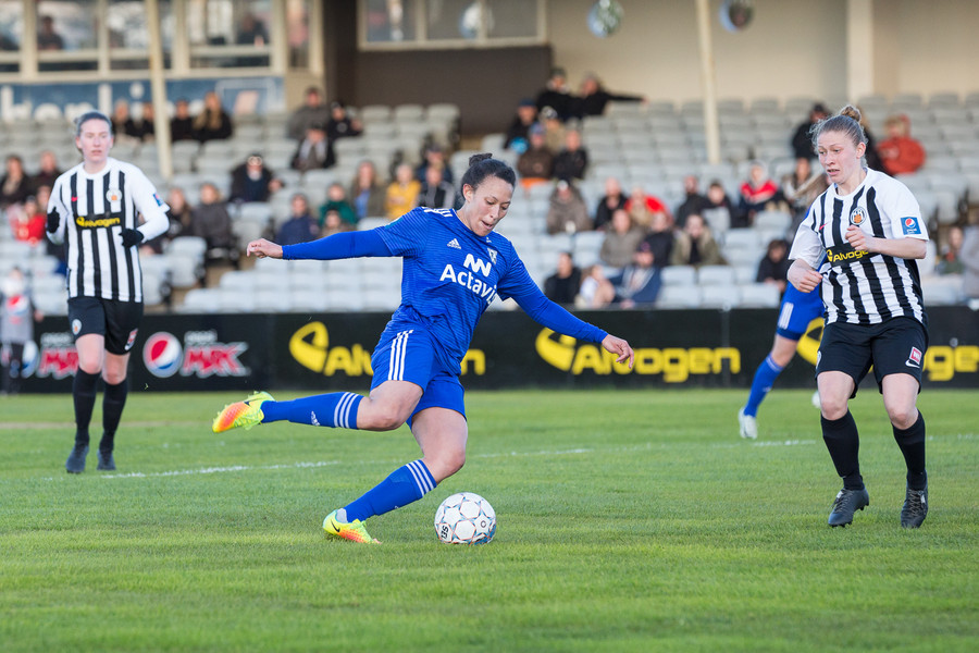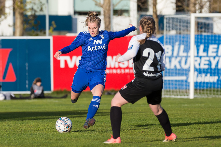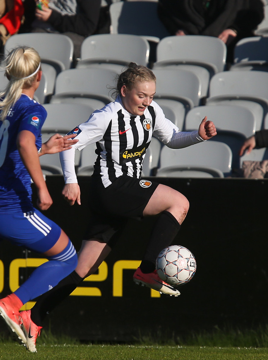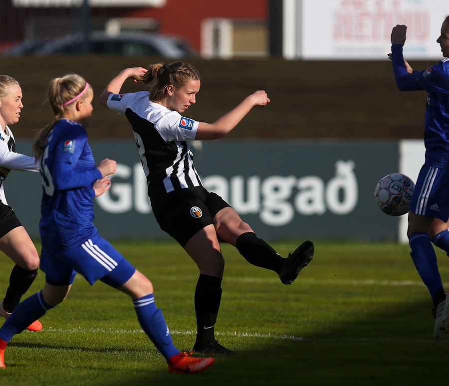 Hanna Marie með fyrirgjöf sem fer afturfyrir, vantar síðustu sendinguna til að skapa meiri hættu