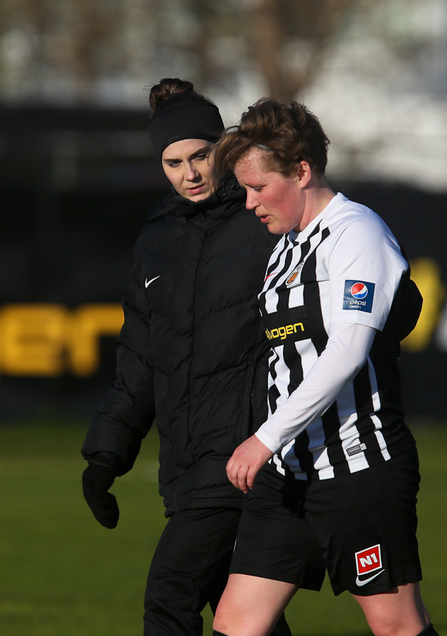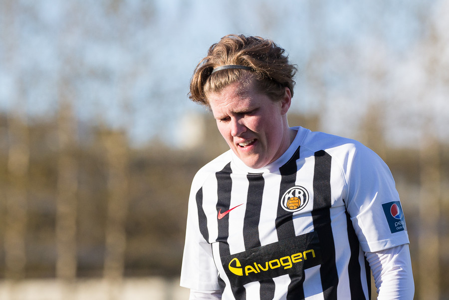 Katrín Ómars er farin af velli meidd. Fékk aftan í læri virtist vera. Engin varamaður klár og KR spila því 10