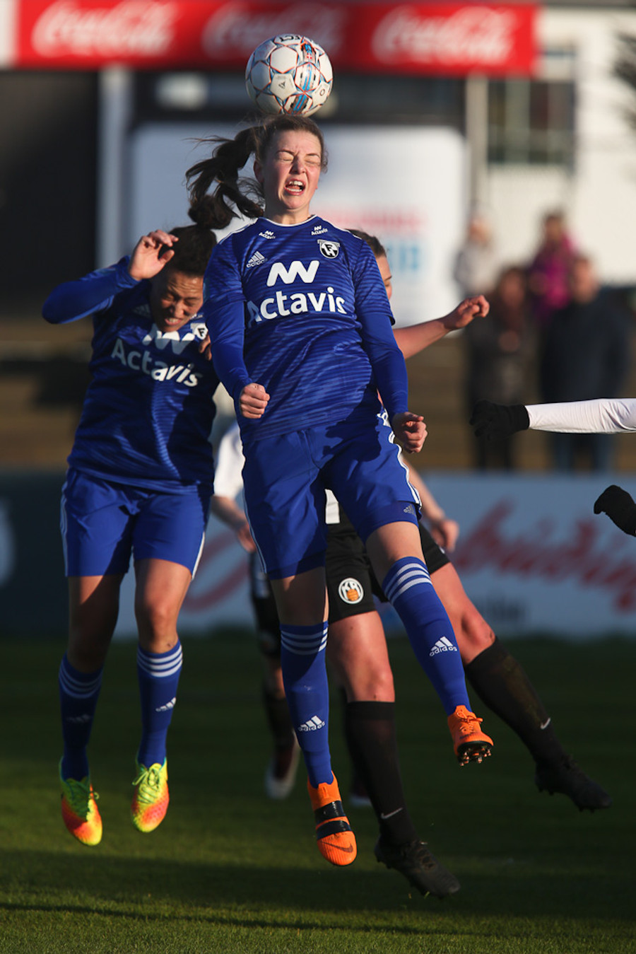 Fyrirgjöf frá Jasmín inná teiginn. Marjani í baráttunni við Hugrúnu sem endar með því að Hugrún setur boltann í eigið mark.