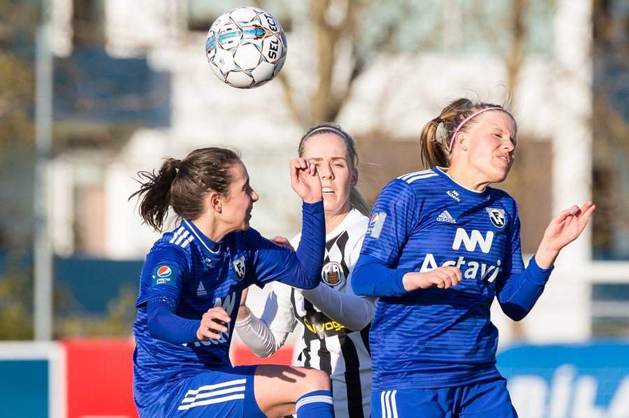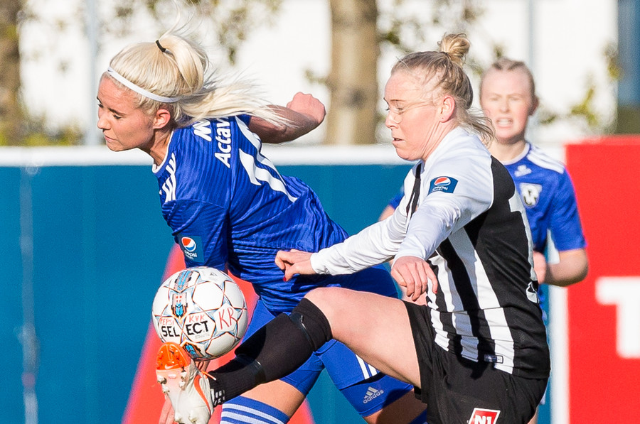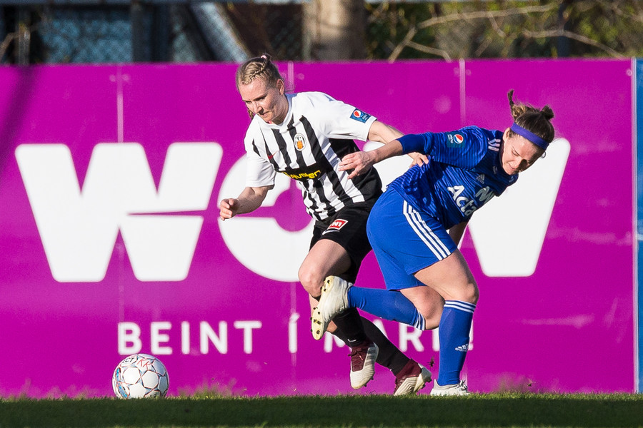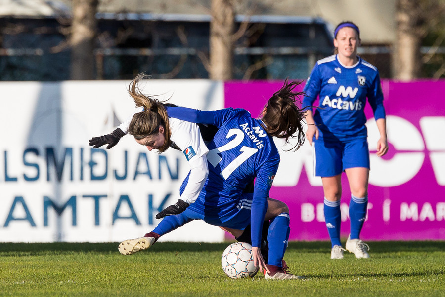 Hætta við KR markið, Jóhanna tæklar boltann og Ingibjörg kemur í veg fyrir annað sjálfsmark