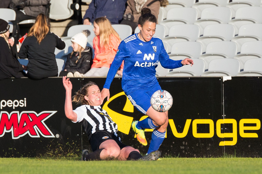 Mjög sérstakt! - Katrín Ómars fær aftan í læri og gefur Jasmín boltann á 30 metrunum sem kemur boltanum á Marjani sem setur boltann vinstra megin framhjá Ingibjörgu í markinu