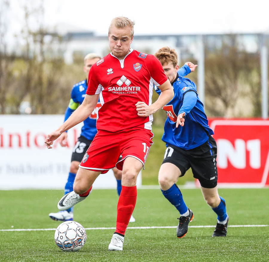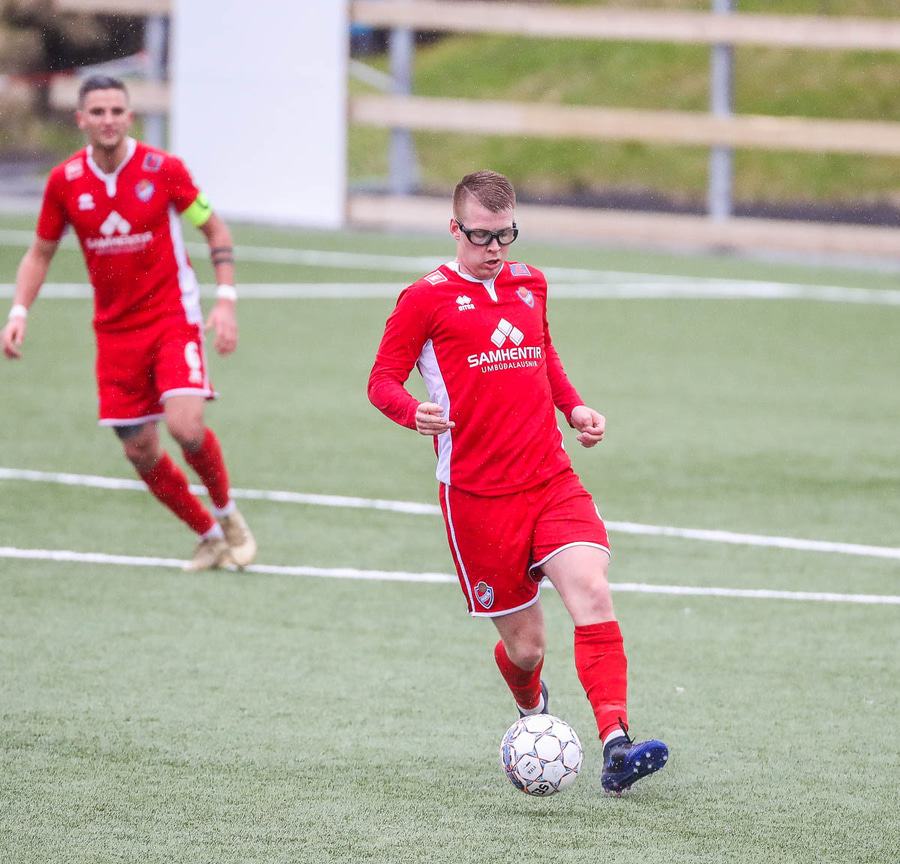 Mikill harka núna 4-5 standandi tæklingar á milli liða á fullum krafti áður en Elías dæmir aukaspyrnu. Alvöru harka og barátta við kunnum að meta það.