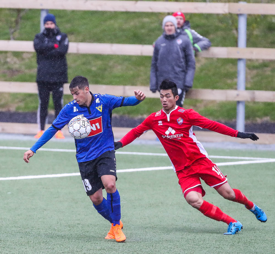 Kári vinur okkar allra síðastliðnu vikur hefur haft mikill áhrif á leikinn. Háir boltar og sendingar svoleiðis rjúka útaf vellinum þegar þær eru reyndar. Línuvörðurinn nær mér þarf að hafa sig allan við til að fjúka ekki yfir miðlínuna.