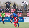 Spyrnan frá Gonzalo er slök en Víkingar halda boltanum og setja smá pressu á Haukanna áður en línuvörðurinn flaggar rangstöðu.