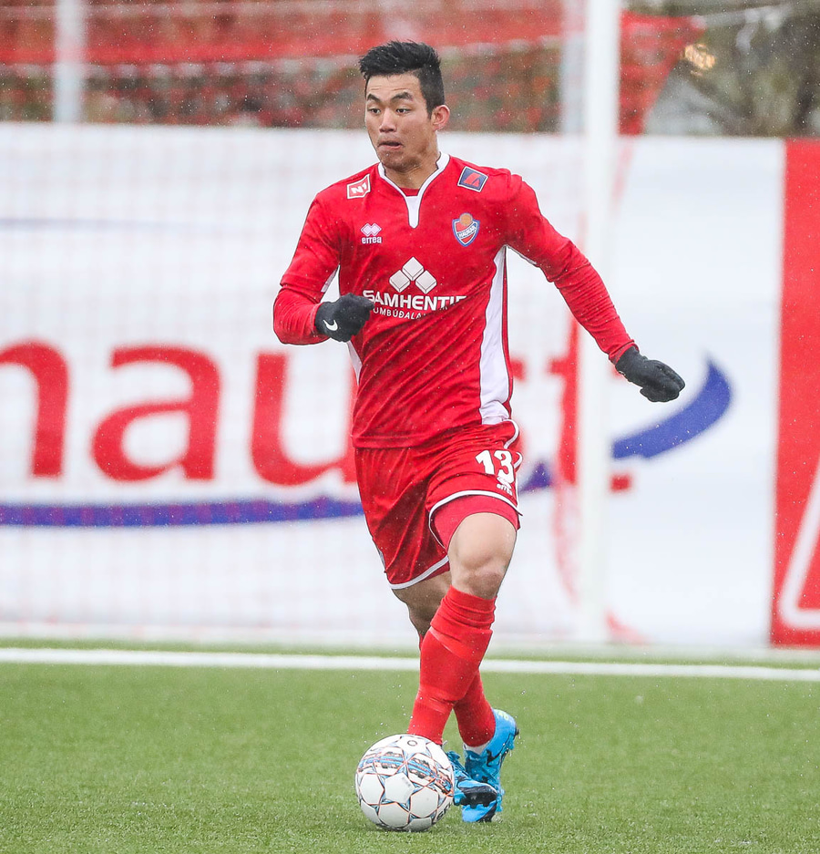Alexander Helgi Sigurðarson..... Hvað varstu að gera þarna? Hann tekur massívt tilhlaup að boltanum og ætlar svoleiðis að þruma honum á markið úr aukaspyrnu en spyrnan hans fer í 90 gráður til vinstri og svona 6 metra upp í loftið. Arfaslök spyrna.