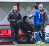 Ejub ekki sáttur eftir að leikmaður hans er tekinn niður á hægri kantinum.
