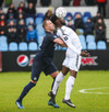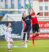 McAustland með skalla í slá eftir hornspyrnu frá Nikolic. Ramminn að þvælast fyrir fyrirliðanum