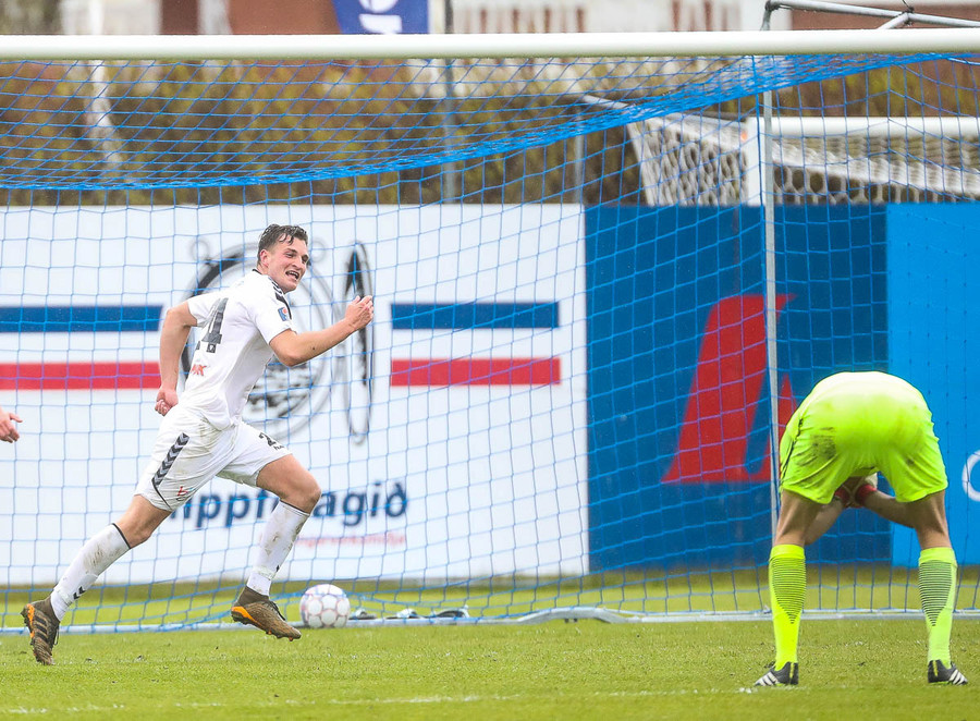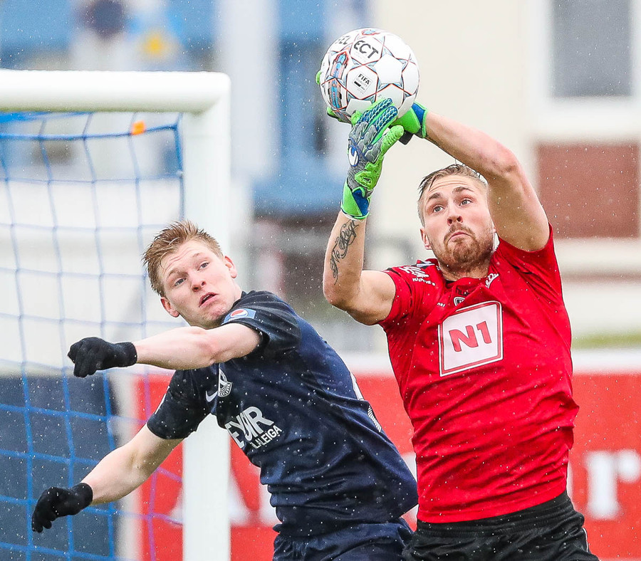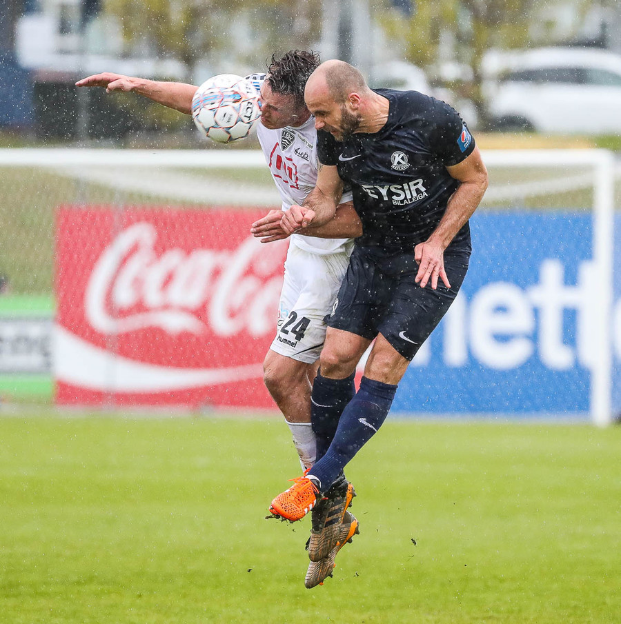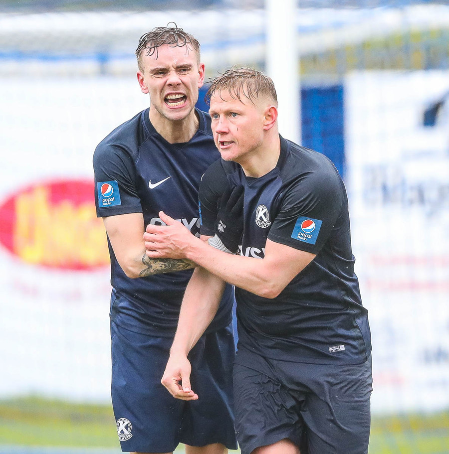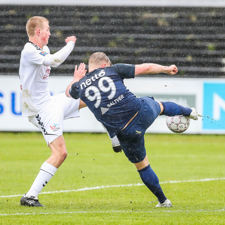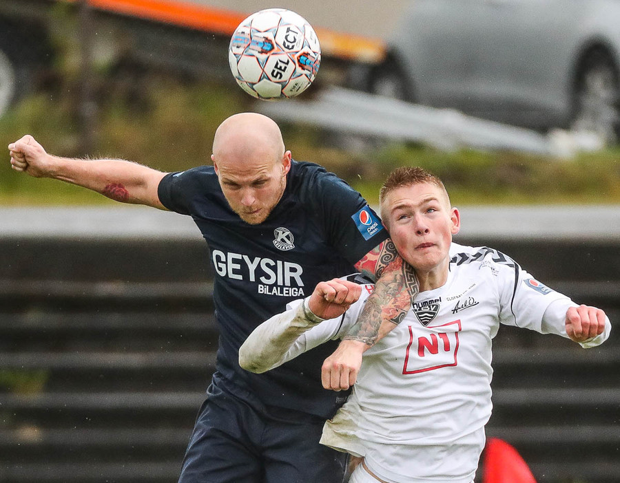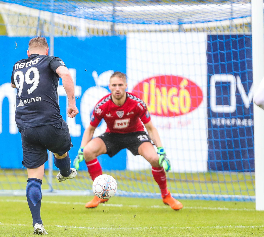 Keflavík í sókn, blokkað af vörninni. Boltinn berst fram völlinn, Sindri kemur á móti. Hann var greinilega enn að hugsa um vin sinn Karius og sparkaði kenttinum í Sigurð Grétar. Hann þakkaði pent og renndi boltanum í autt markið.