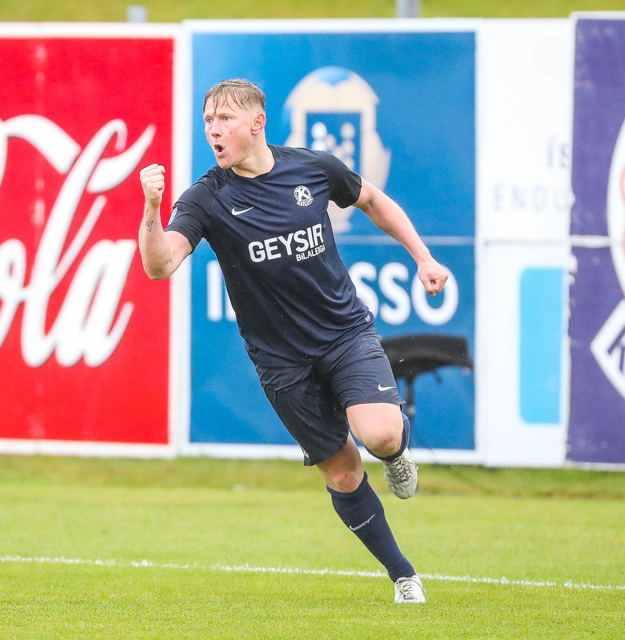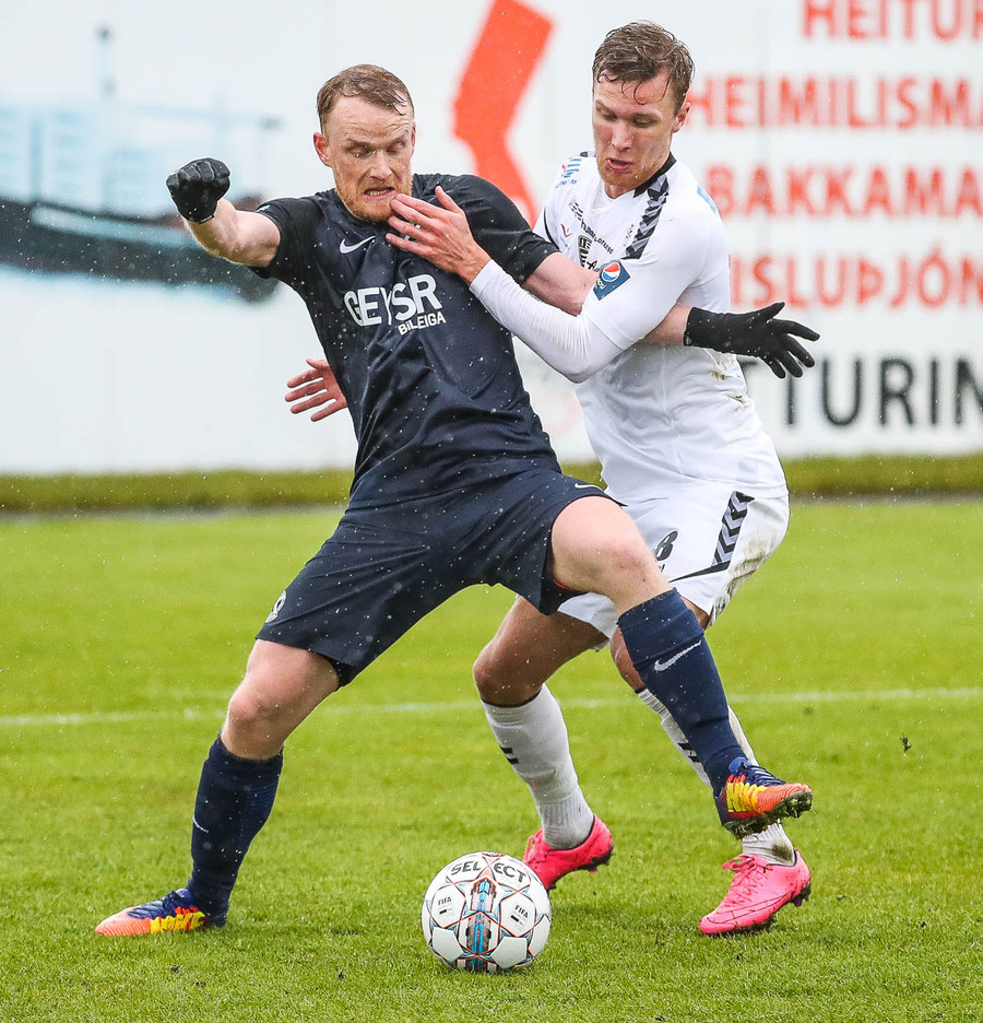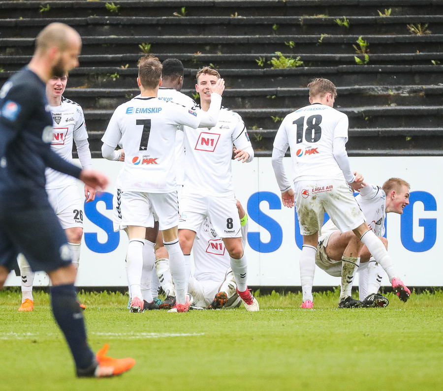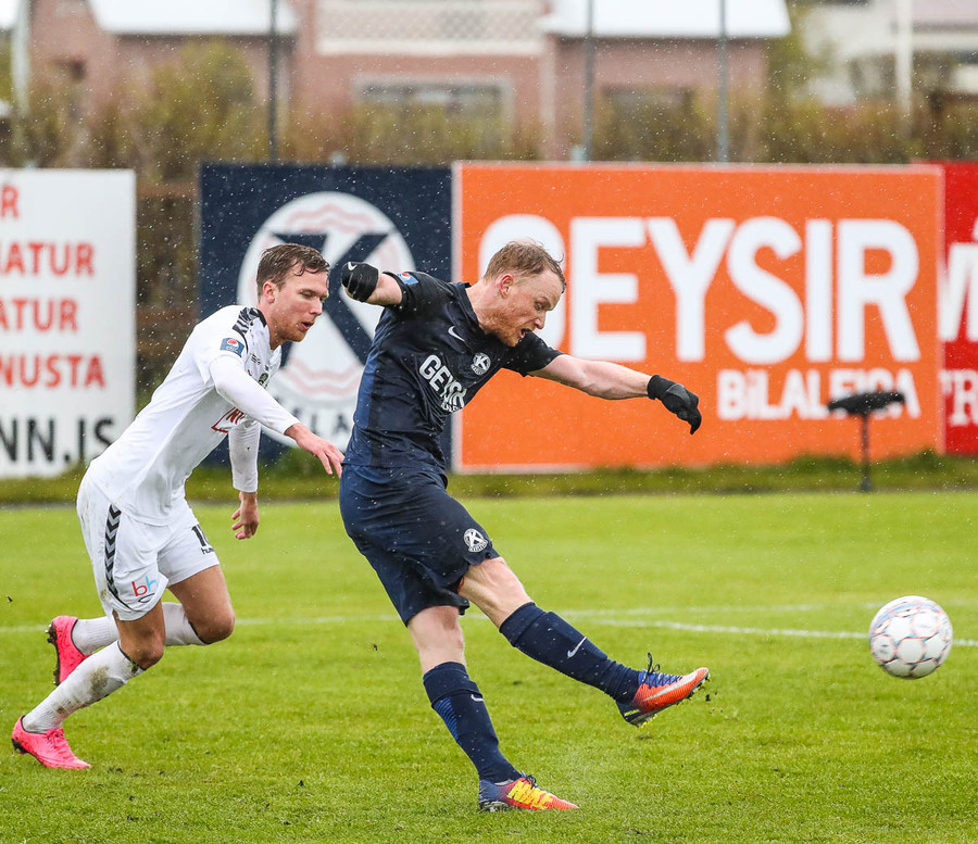 Þvert gegn gangi leiksins. Sindri skoraði af stuttu færi eftir aukaspyrnu Jonathan Franks
