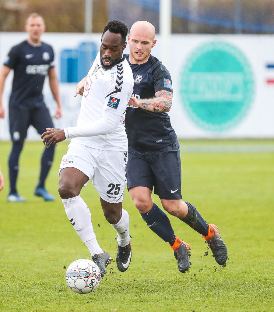 Heimamenn hlaða hér í hvert færið á fætur öðru. Marc átti skalla sem hitti ekki á markið. Boltinn barst til Sigurbergs en fast skot hans í varnarmann og gestirnir komu boltanum í burtu. Heimamenn eru mun ákveðnari í öllum aðgerðum.