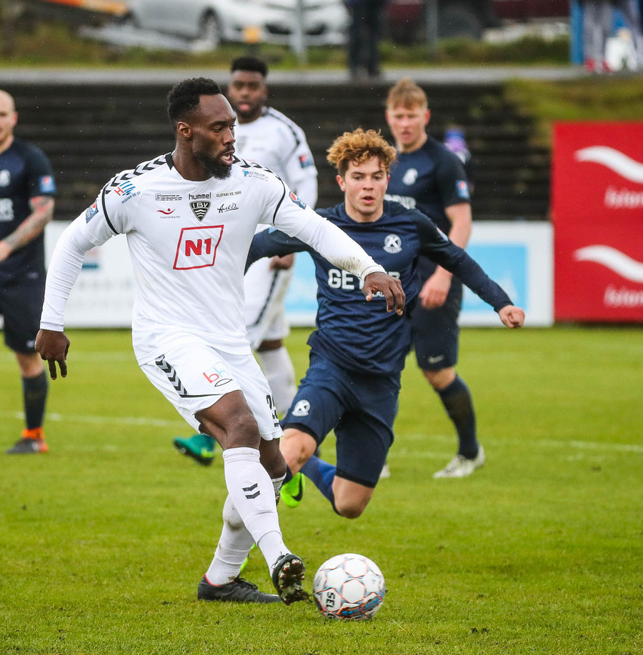 Jonathan franks með fast skot að marki Keflavíkur eftir góða sókn en skotið hátt yfir.