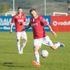 Kristinn Ingi er nánast kominn einn í gegn en missir boltann of langt frá sér og Valsmenn fá hornspyrnu.
