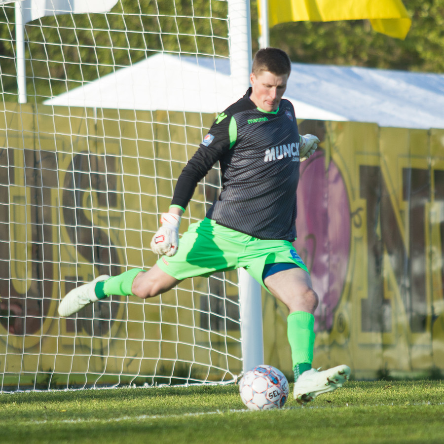 Arnar Sveinn skilur Arnór Breka eftir í rykinu og á fasta fyrirgjöf/skot sem fer beint í fangið á Þórði.