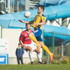 Sindi Björns leggst hér í grasið í annað skiptið í leiknum. Spurning hvort kælispreyið bjargi þessu ekki.