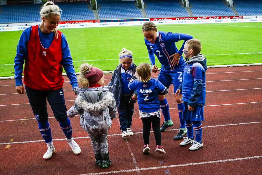 Þessar stelpur eru mættar alla leið frá Akureyri til að styðja landsliðið. Þarna leynast framtÃðarleikmenn Ãslands #fotboltinet pic.twitter.com/45rUDa1Q8D