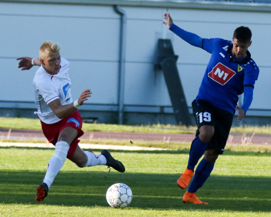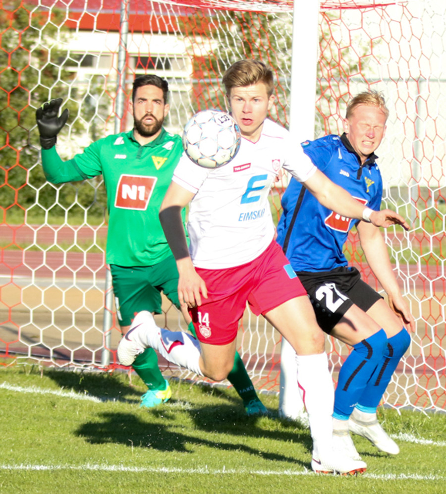 Jónas Björgvin fær svo boltan á miðjunni og er nálægt því að setja Alvaro Montejo einan í gegn.