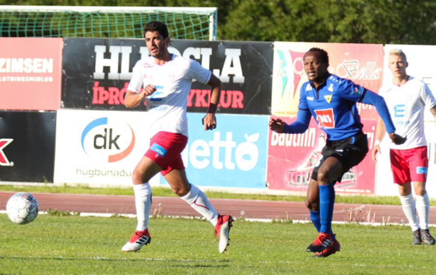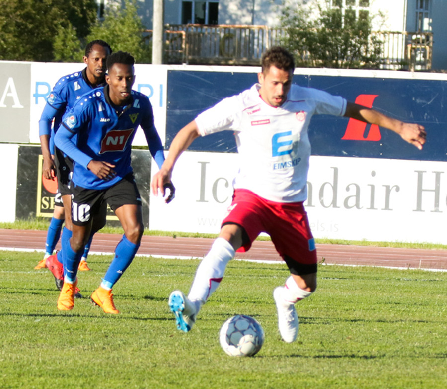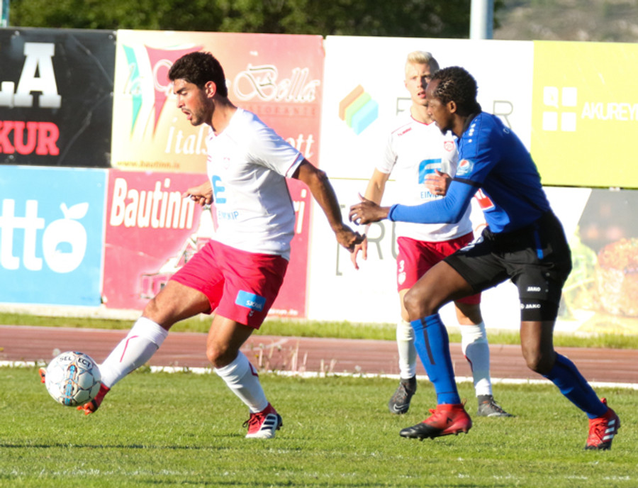 Emir Dokara hér með ljóta tæklingu á Nacho Gil. Nacho sleppur með tiltal og Þórsarar fá aukaspyrnu á fínum stað.