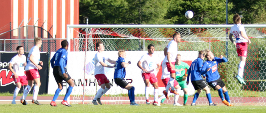 Þórsarar fá hér horn. Loftur Páll í fínu færi en skallar framhjá.