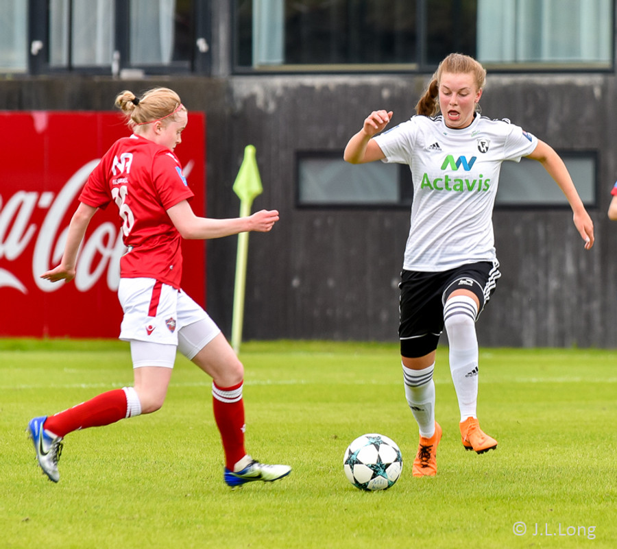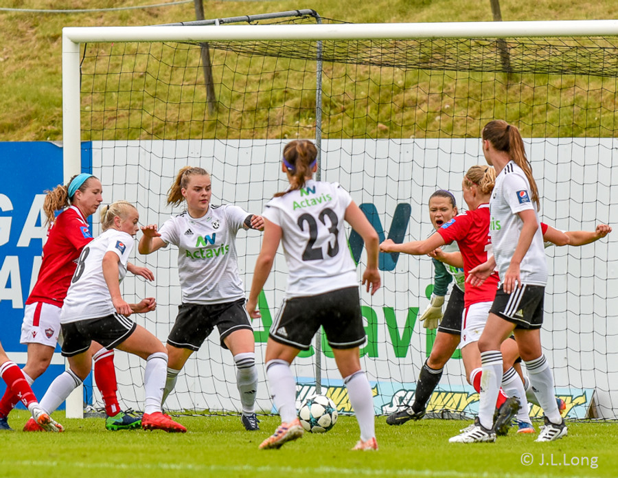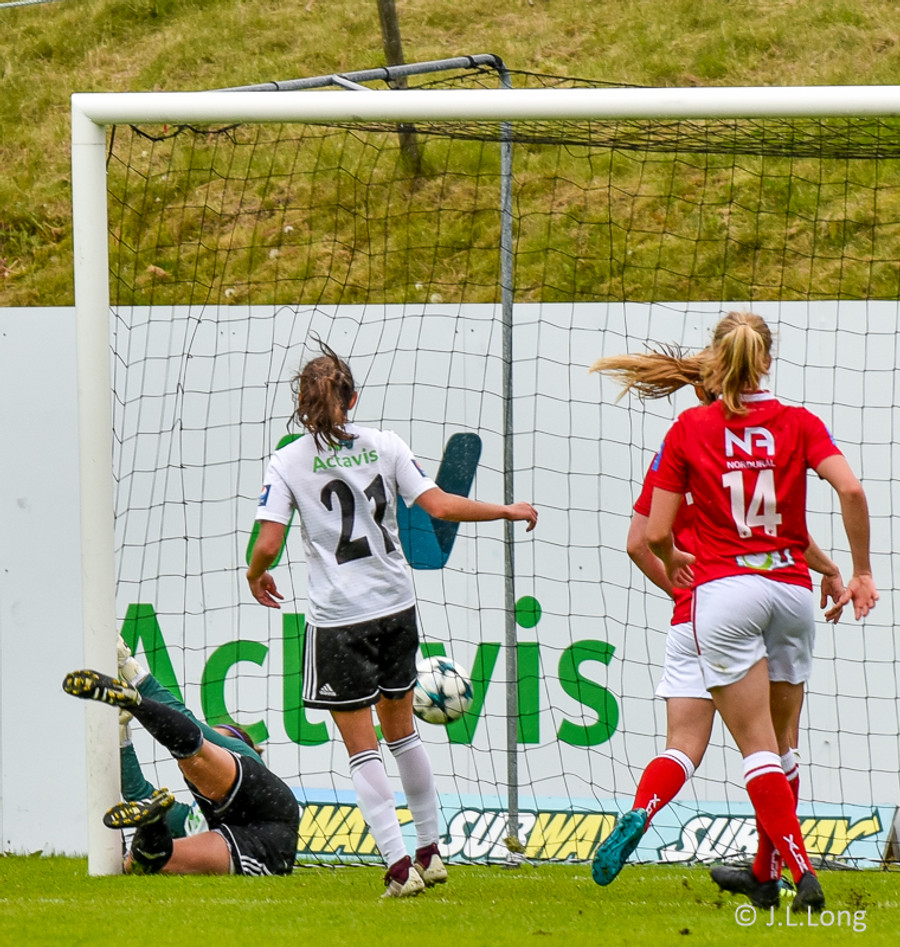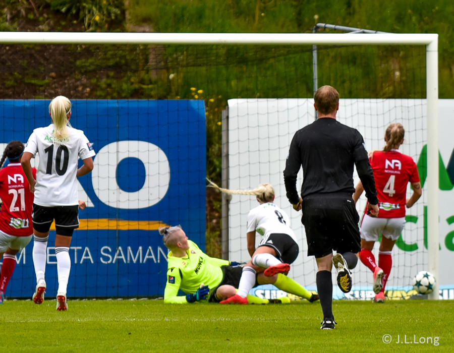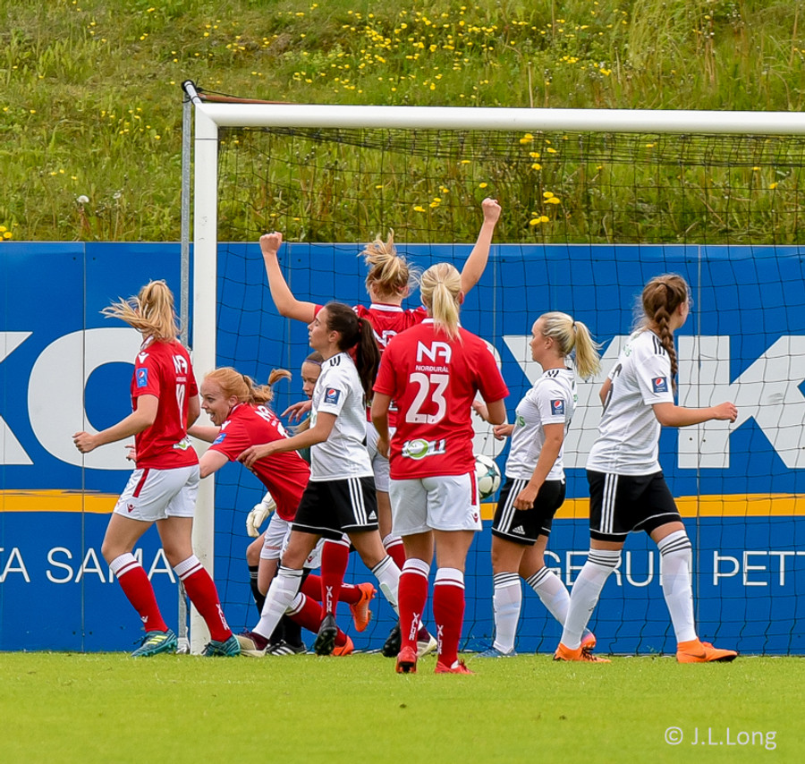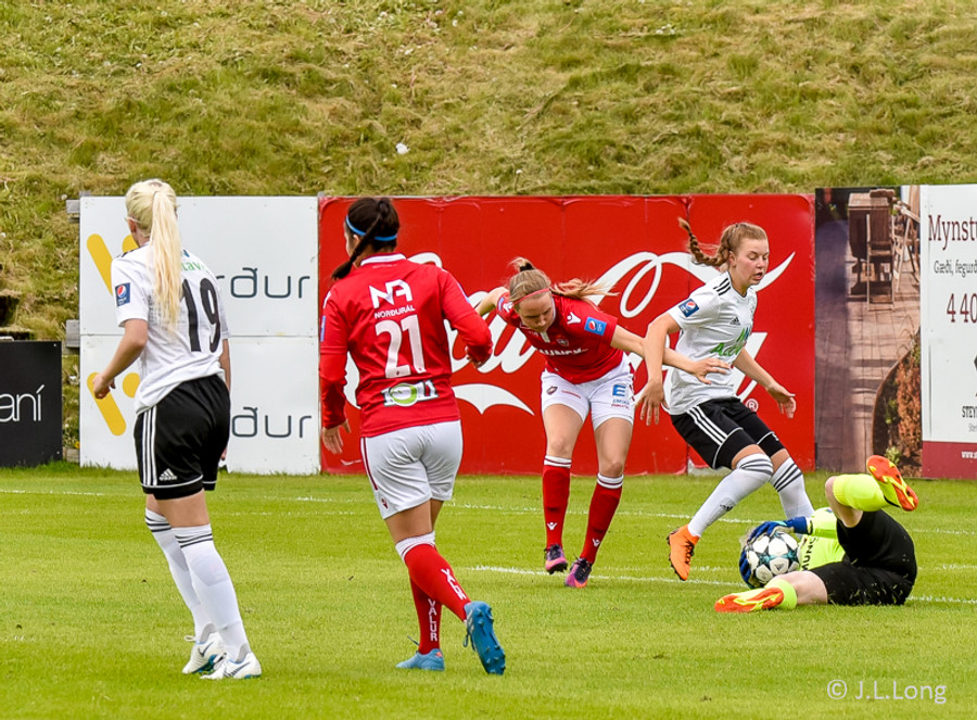 LÍNAAA! Váááááá Guðrún Karítas kemst ein í gegn fer í baráttu við Hugrúnu sem hún vinnur sólar svo Tatiönu í markinu áður en hún lætur vaða á markið. Hver er mætt þar ? Jú Hugrún Elvarsdóttir leading by example og bjargar á marklínu geggjuð vörn!!