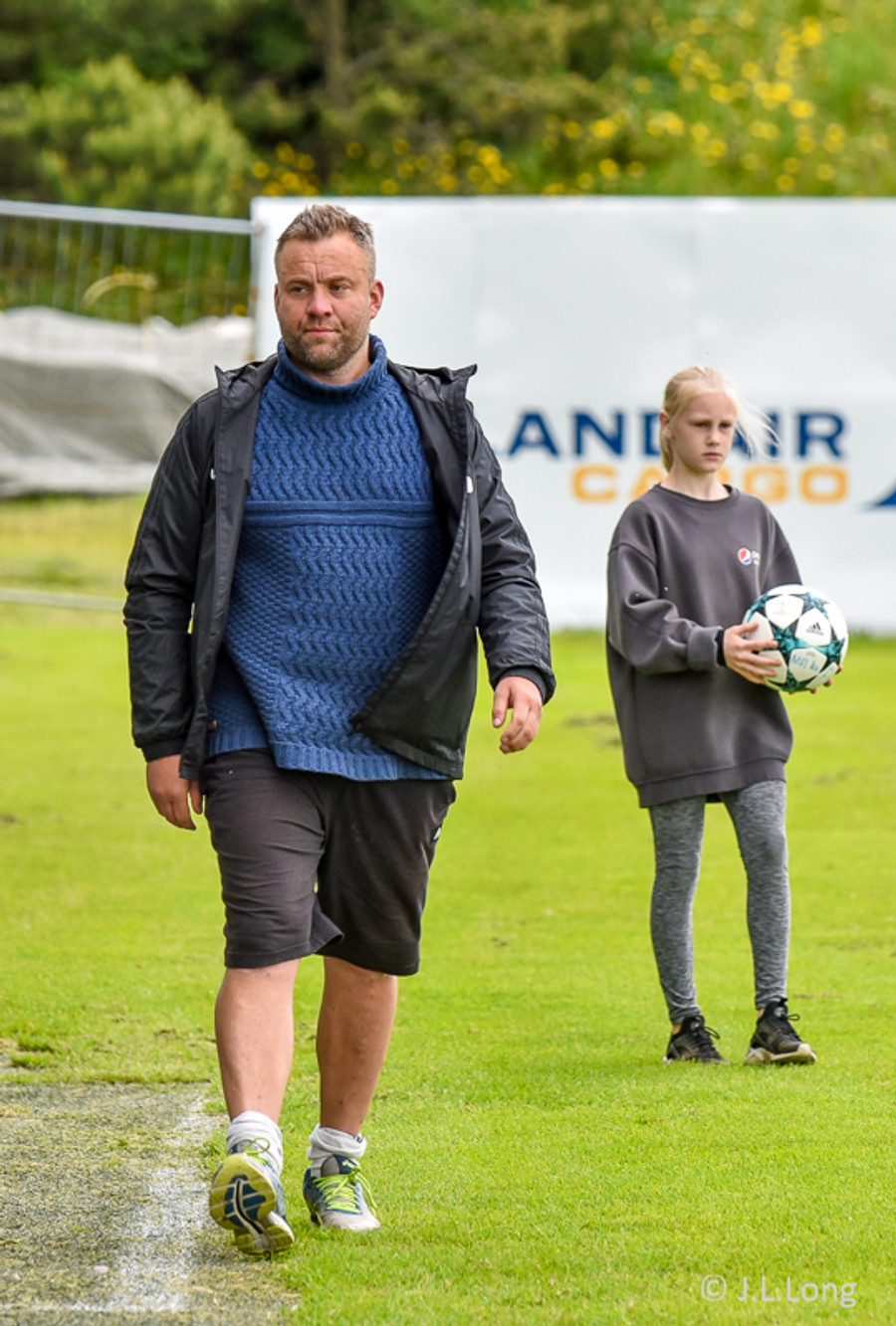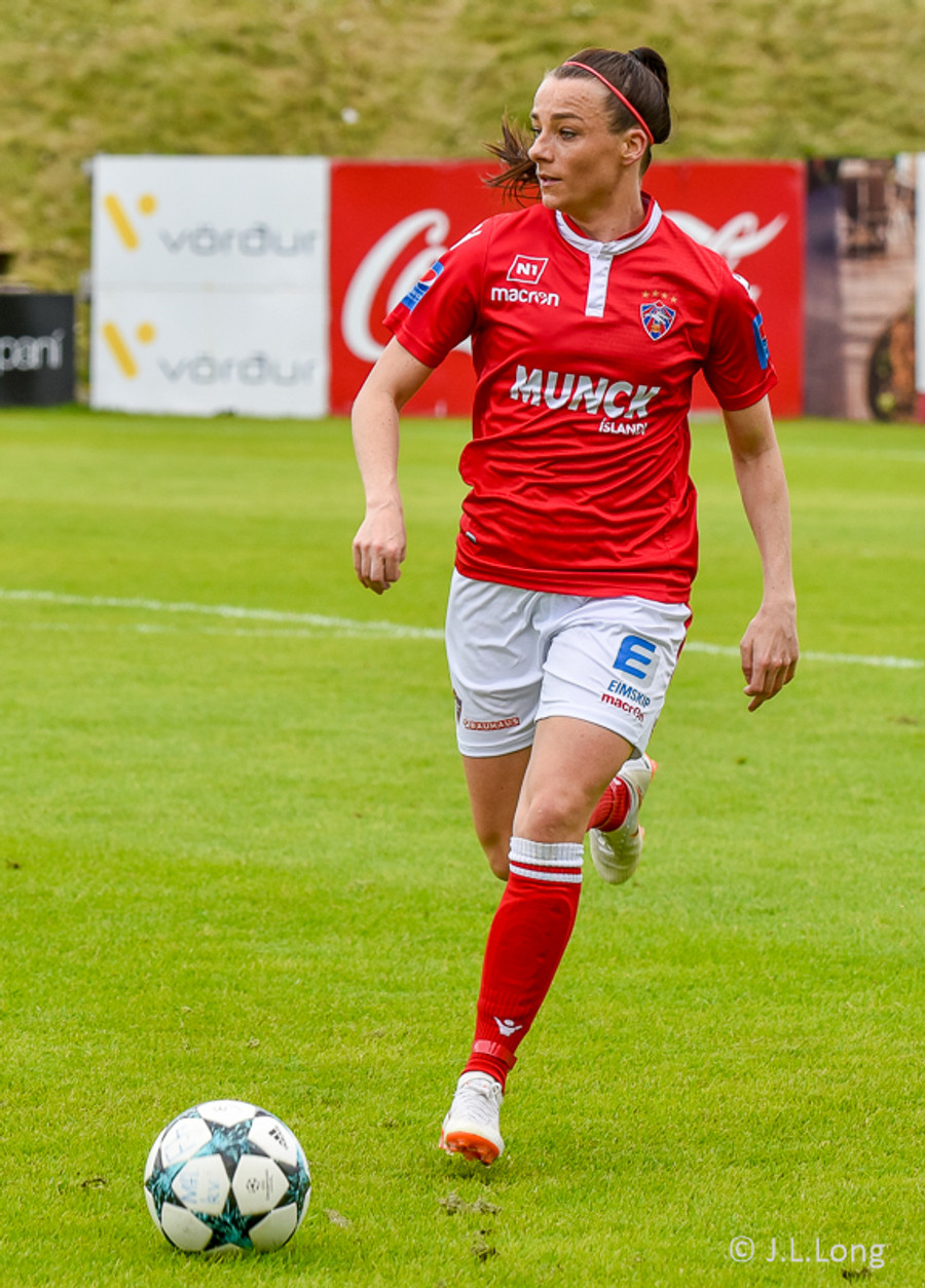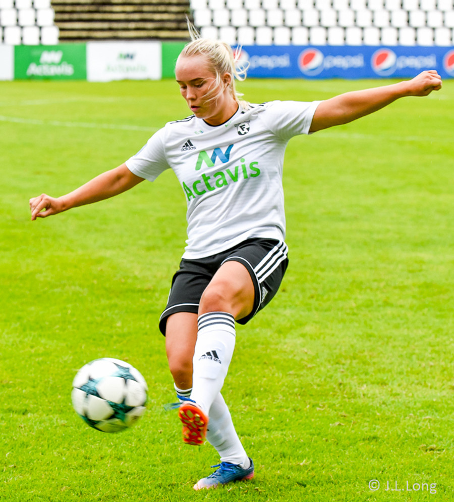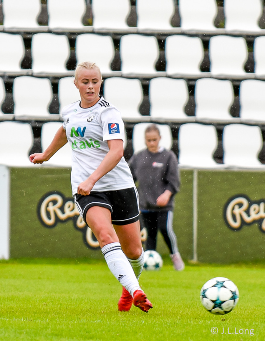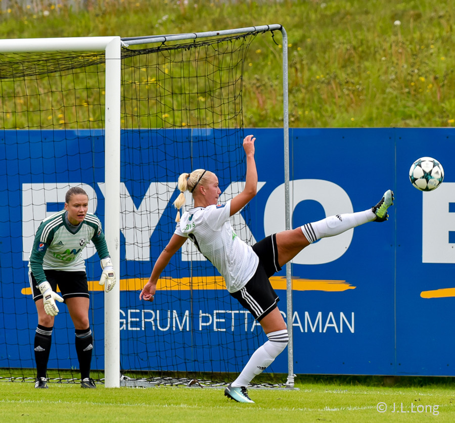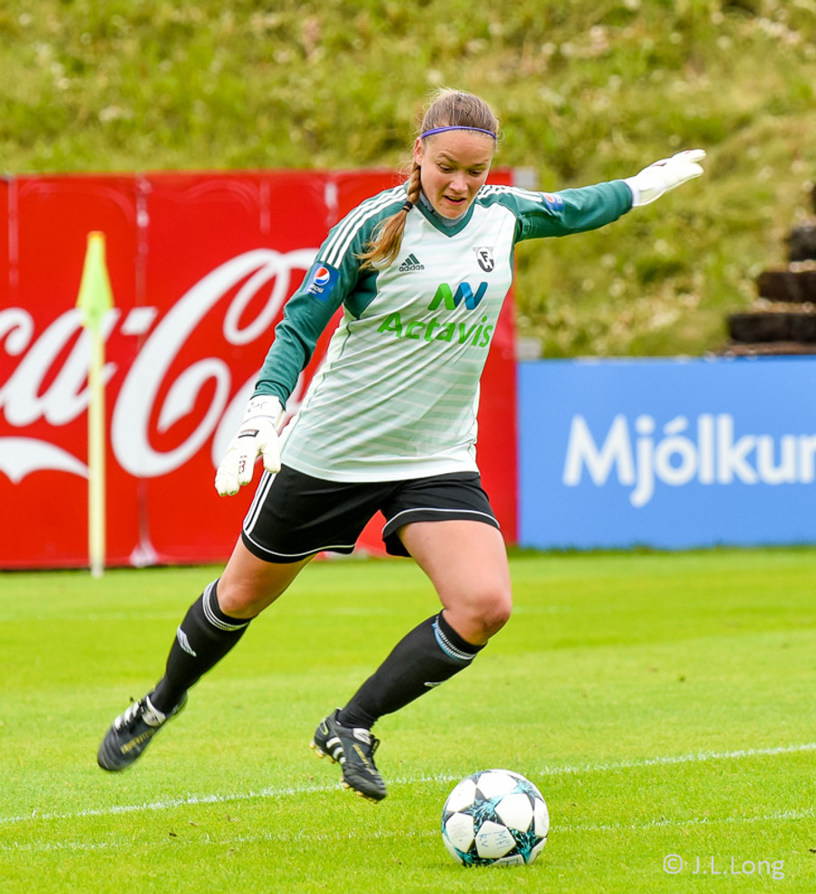 Elín Metta aðeins að hita upp skotfótinn sinn og reynir hér banger frá 30 metrunum sem að fer langt yfir markið. Heiðarleg tilraun samt ég fagna þessu