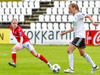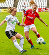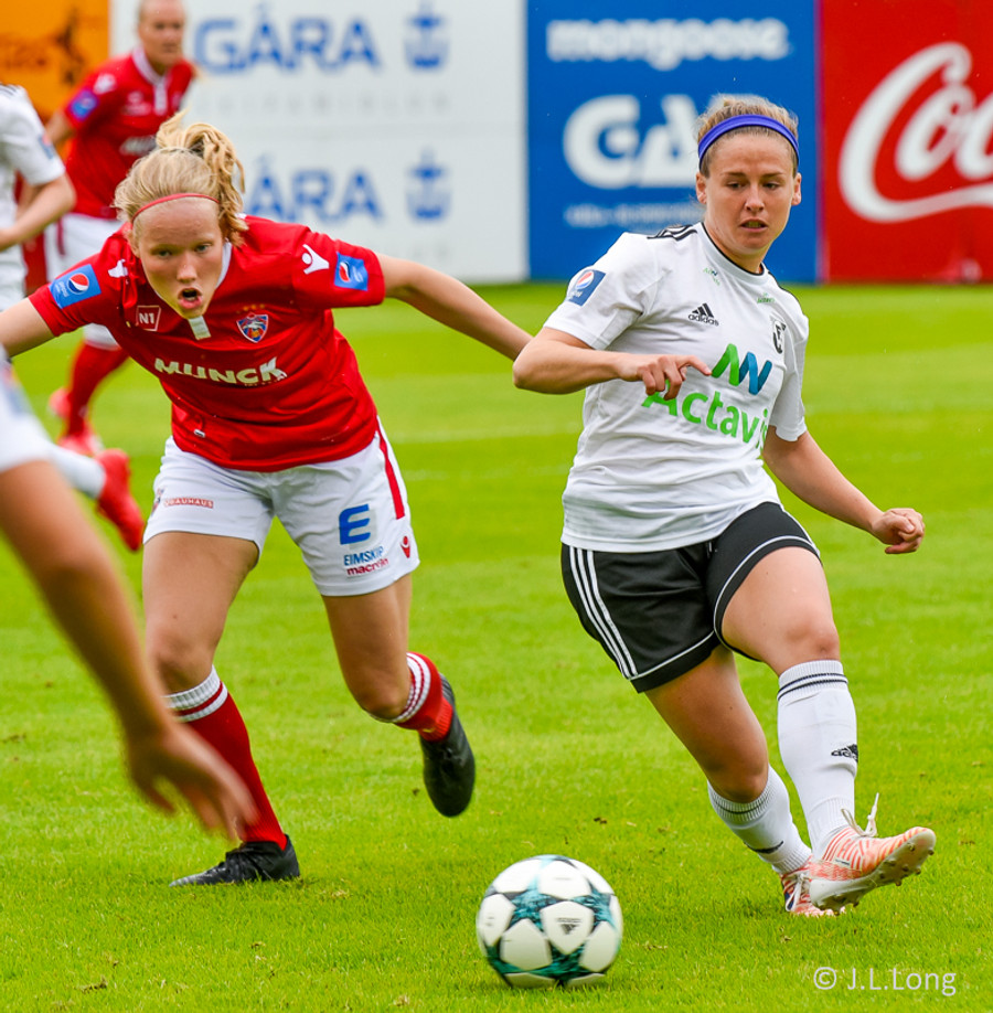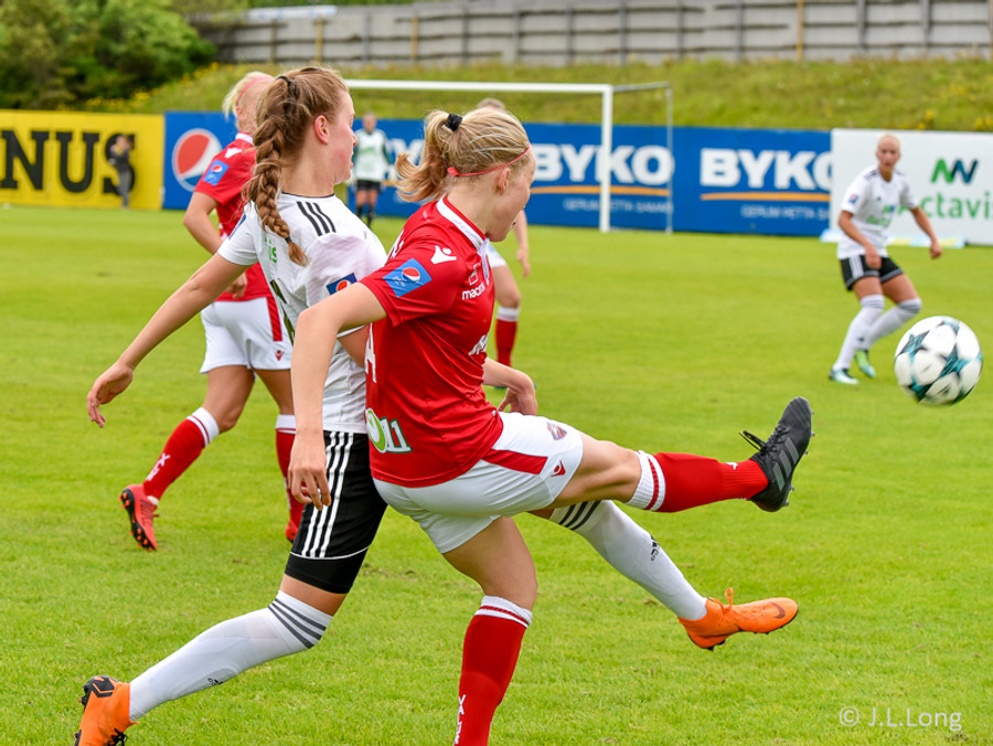úúúúííííúúííí! Geggjuð sending frá Ásdísi Karen á Elín Mettu sem að stingur alla af og reynir að vibba yfir Tatiönu í markinu en boltinn skoppar á þverslánni! Geggjuð sókn og flottir tilburðir