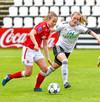 Í sömu andrá er Helena á eftir boltanum á fleygiferð en Sandra er á undan í hann og tekur létt gabbhreyfingu framhja Helenu. Púlsinn á Söndru fór ekki hátt þarna hún er 100% í tæknireitnum fyrir æfingar.