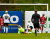 Skotið frá Chrystal fer í hliðarnetið og FH fá markspyrnu.
