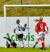ÚFF Diljá fær þungt högg hérna um leið og hún skallar frábæra fyrirgjöf frá Örnu Dís sem að Sandra ver í markinu.