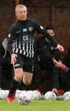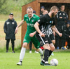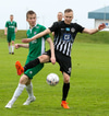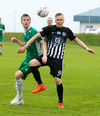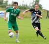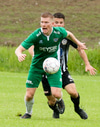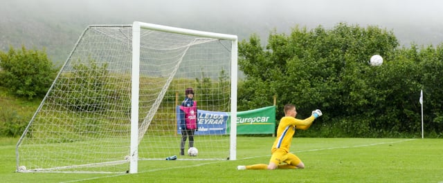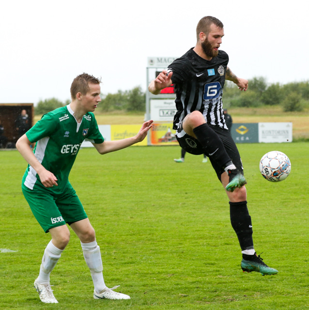 Kenneth við að það sleppa í gegn en Steinþór gerir vel í markinu og kemur út og handsamar boltann
