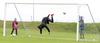 Fær fyrirgjöf frá Baldvin og aftur stekkur hann hæst og skallar að marki. Þetta var beint á Robert sem virðist í fyrstu hafa varið þetta en einhvern veginn missti hann boltann á milli fótana á sér