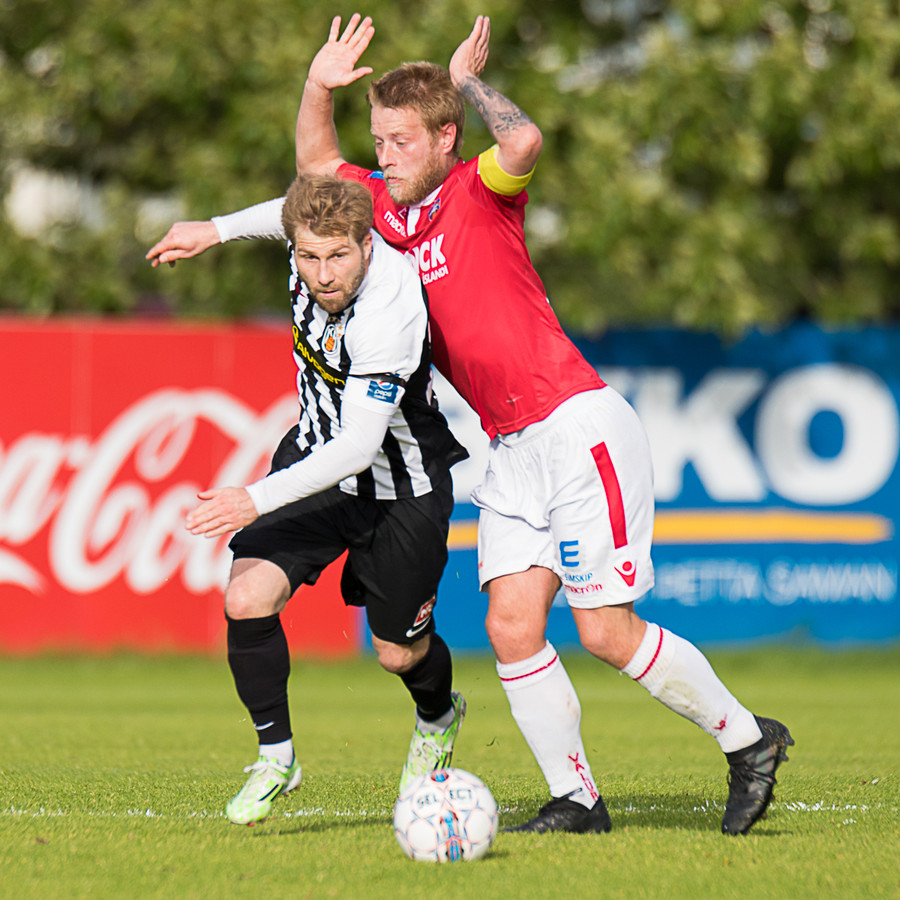 Kristinn Jónsson með fyrirgjöf en Bjarni Ólafur hreinsar frá. Ekki spes fyrirgjöf.