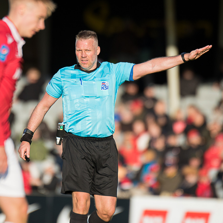 Lögregluvarðstjórinn Pétur Guðmundsson dæmir leik kvöldsins. Aðstoðardómarar eru Gylfi Már Sigurðsson og kjötiðnaðarmaðurinn ástsæli Jóhann Gunnar Guðmundsson. Helgi Mikael Jónasson heldur á skilti.