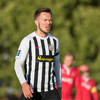 Kristinn Freyr fær eitthvað að heyra það frá KR-ingum í stúkunni. Brosir upp í stúku.