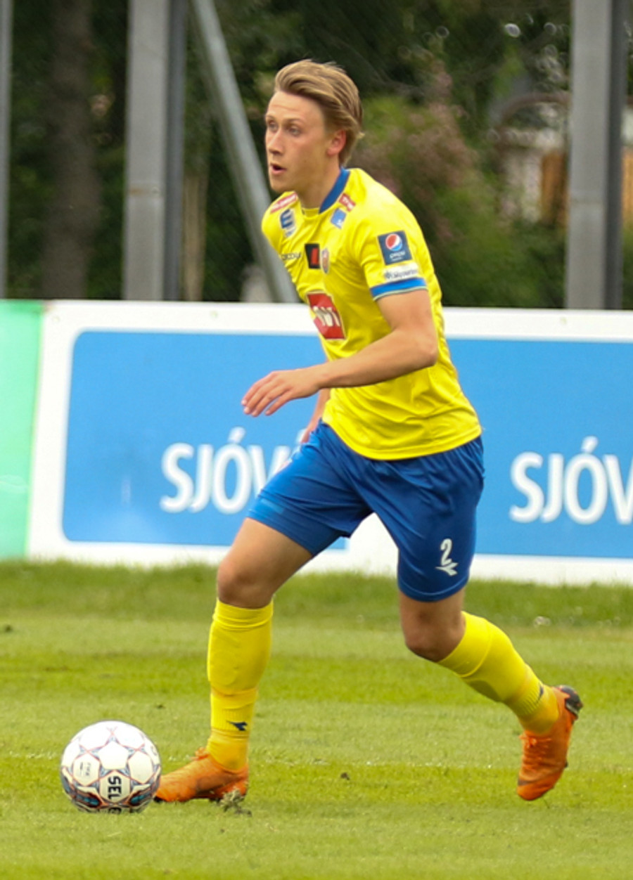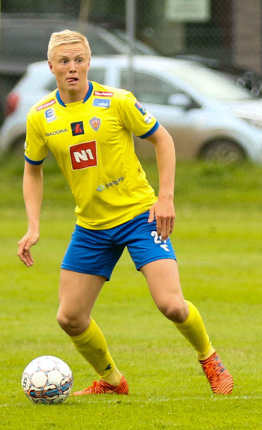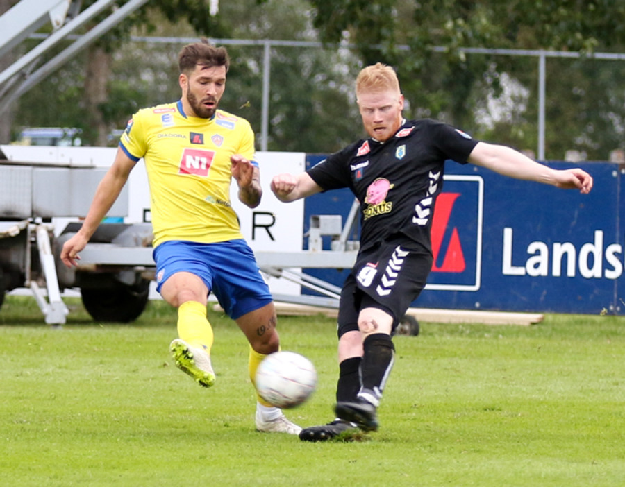 Ótrúlega heimskuleg tækling hjá Archie, óþarfi en Fjölnir á aukaspyrnu á frábærum stað rétt fyrir utan teig