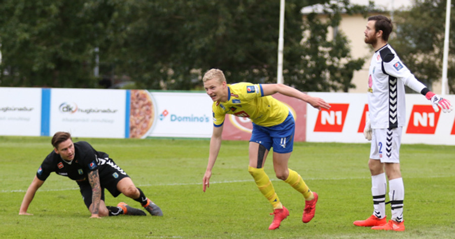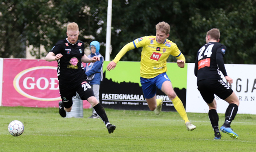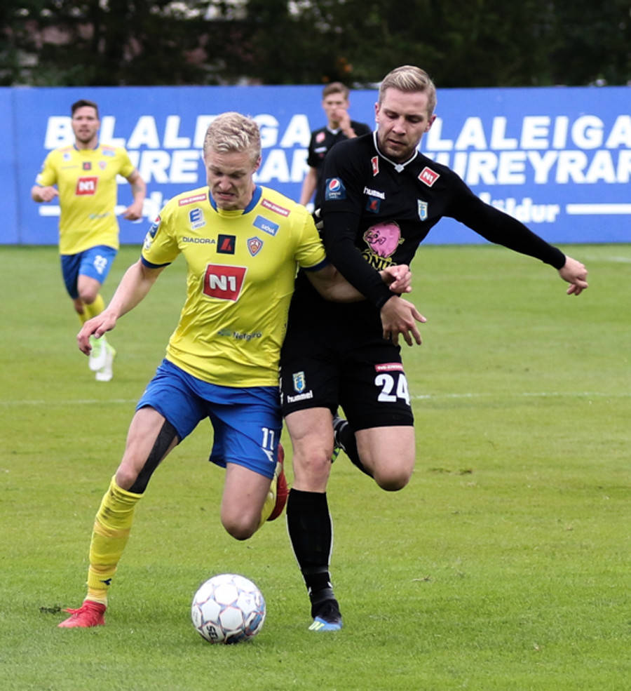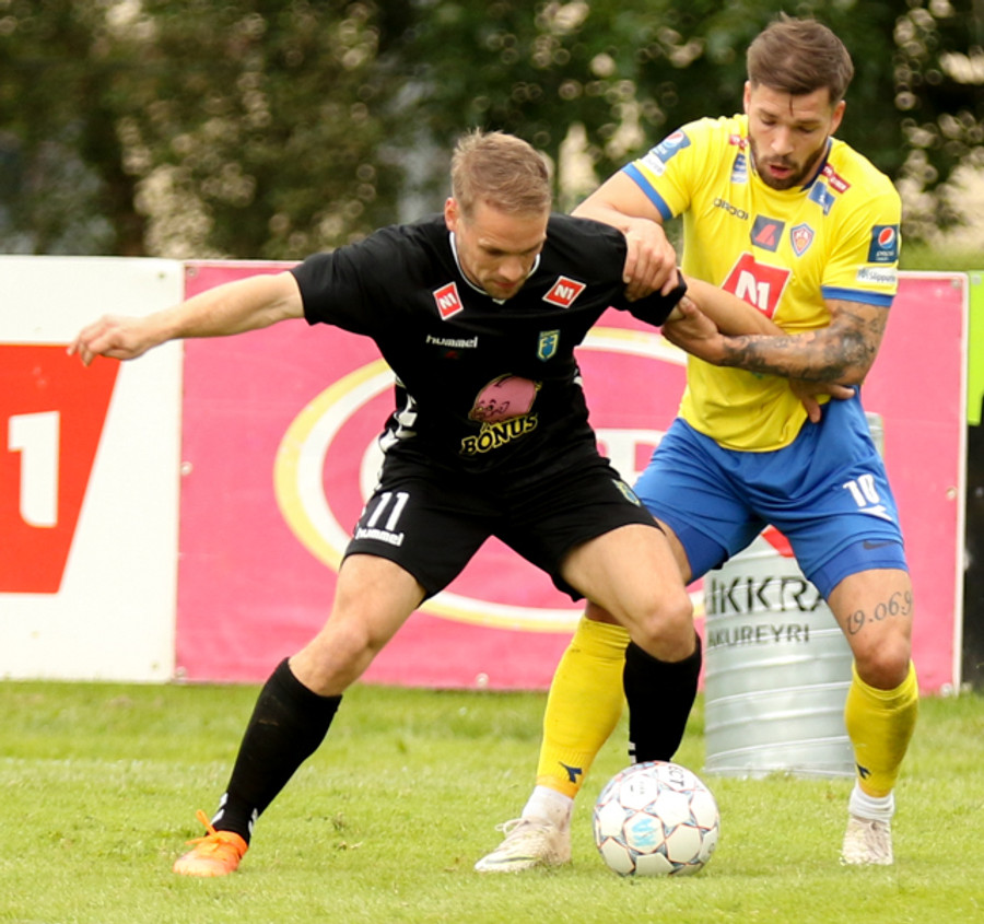 Brýtur á Ásgeir sem nælir í aukaspyrnu fyrir KA á fínum stað