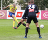 Lagleg sókn hjá Fjölni, Mario kemur boltanum fyrir og Þórir nær skallanum á markið en Cristian blakar honum yfir, hornspyrna