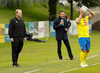 Dómarinn tekur Guðmann á Valmit á spjall, þeir voru eitthvað að kljást hér. Þóroddur leggur þeim línurnar áður en KA tekur innkast