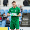 Fyrstu menn komnir út að hita upp, að sjálfsögðu markmennirnir.