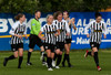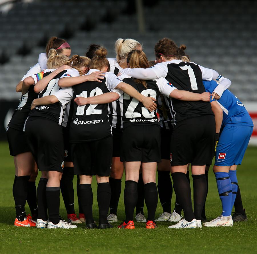 KR ingar funda á meðan leikurinn er stopp, á einum tímapunkti benda þær allar upp hægri kantinn, spurning hvort næsta sókn komi þar.