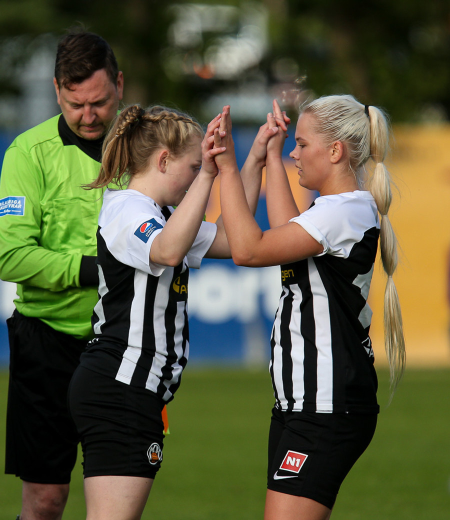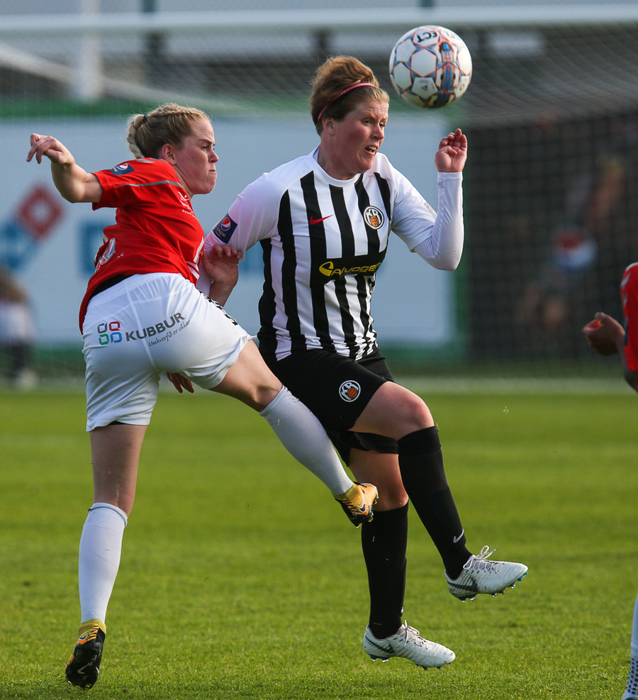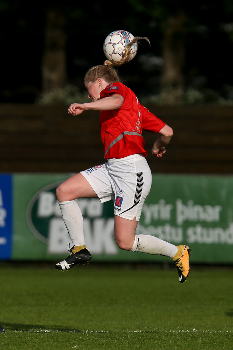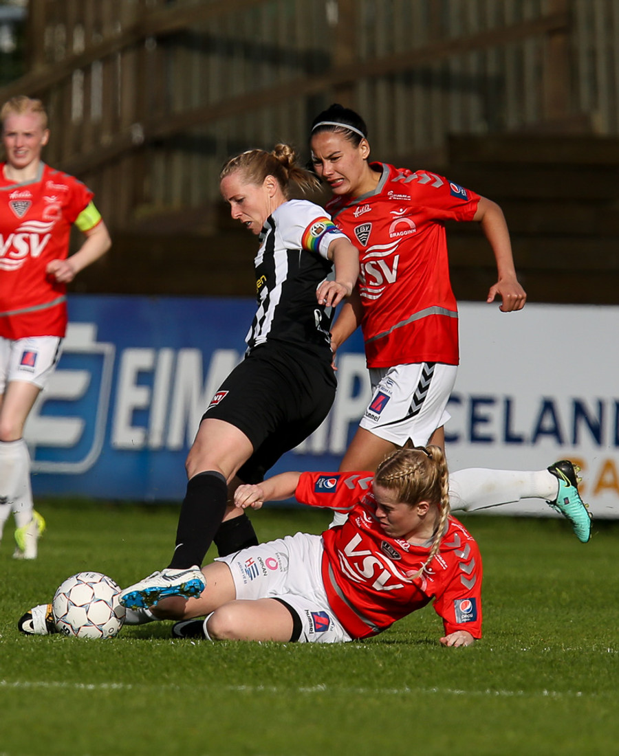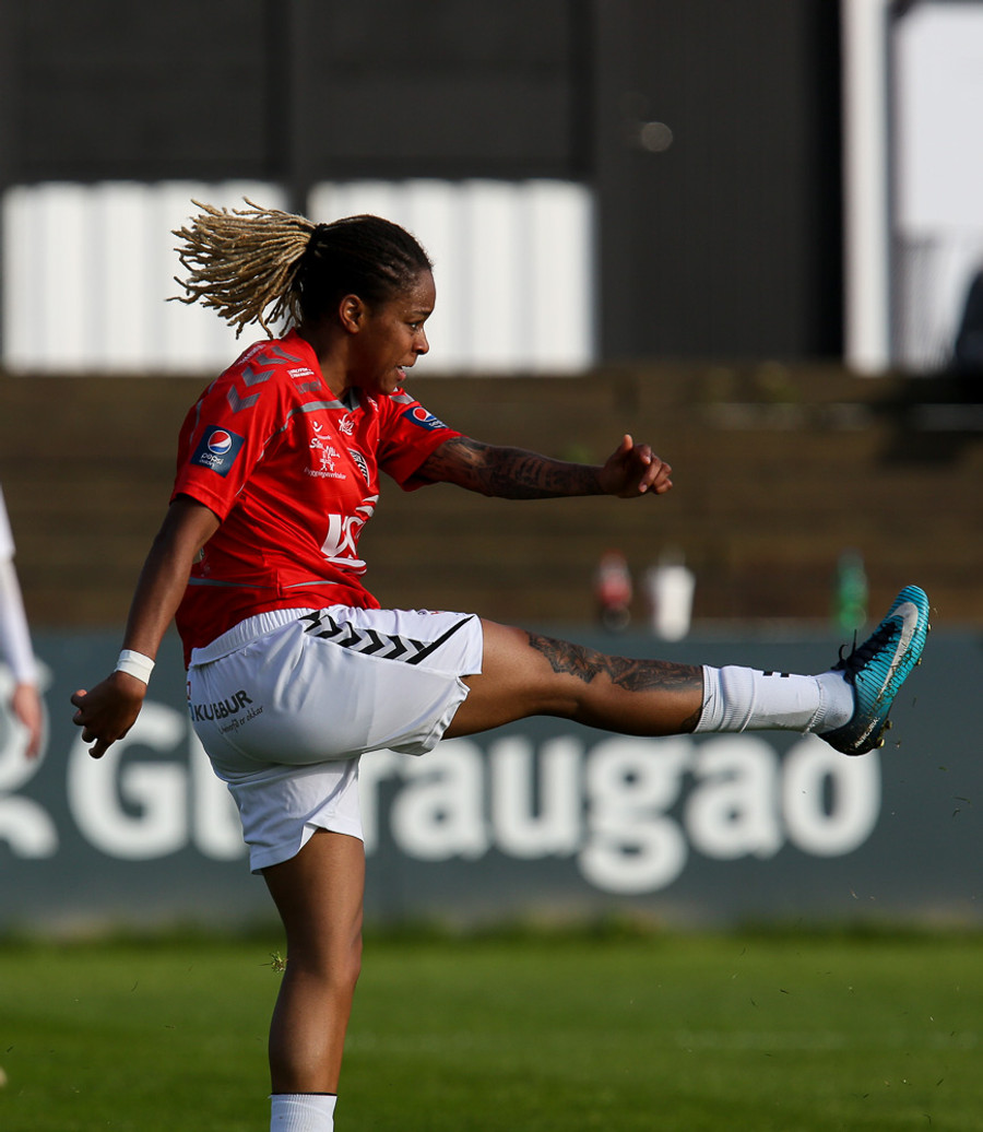 Hrafnhildur var annað hvort með geggjaða björgun eða algjöra töffara stæla. Fékk boltann með mann alveg ofan í sér og reddar því með að taka boltann til hliðar og hreinsa.