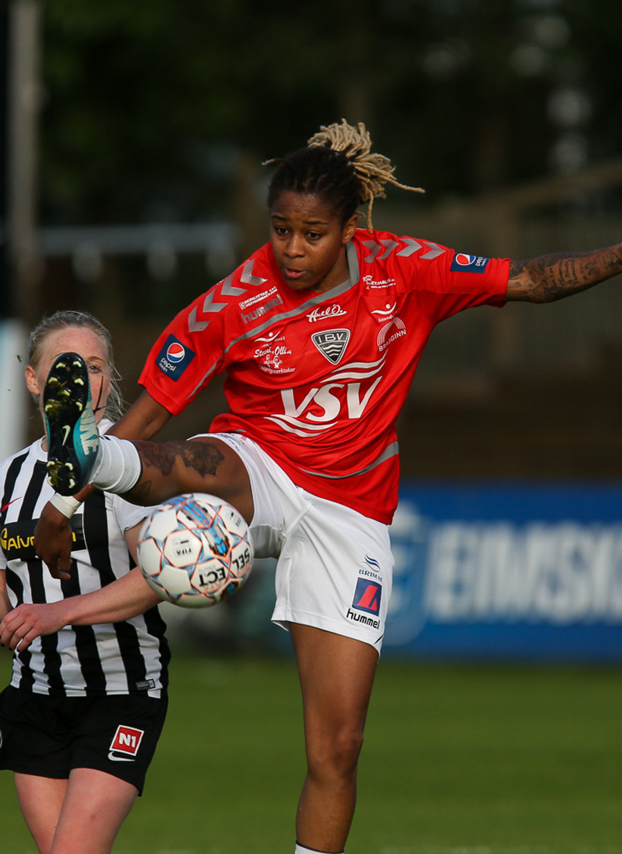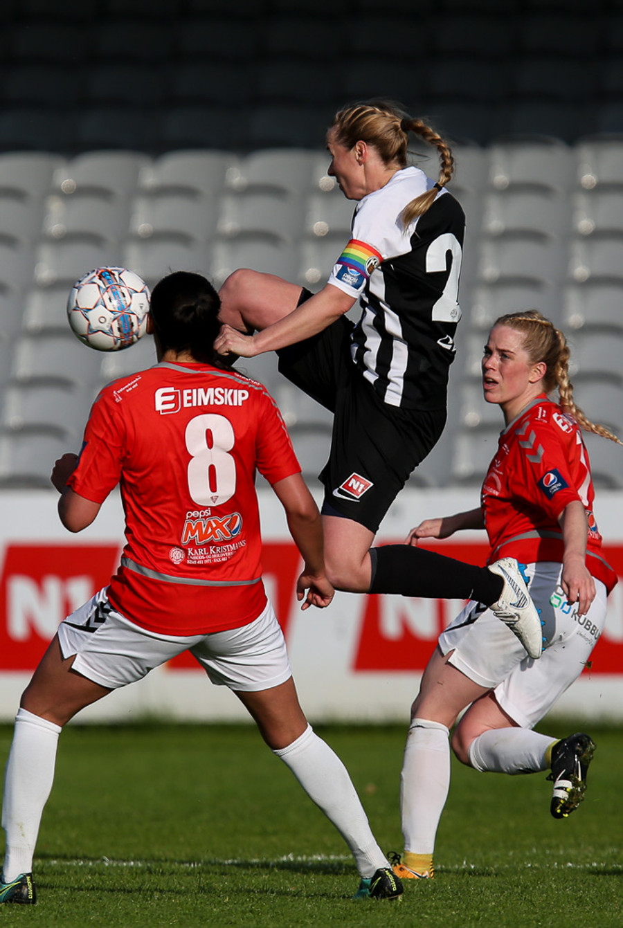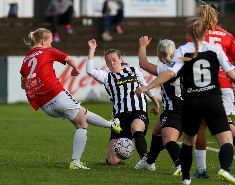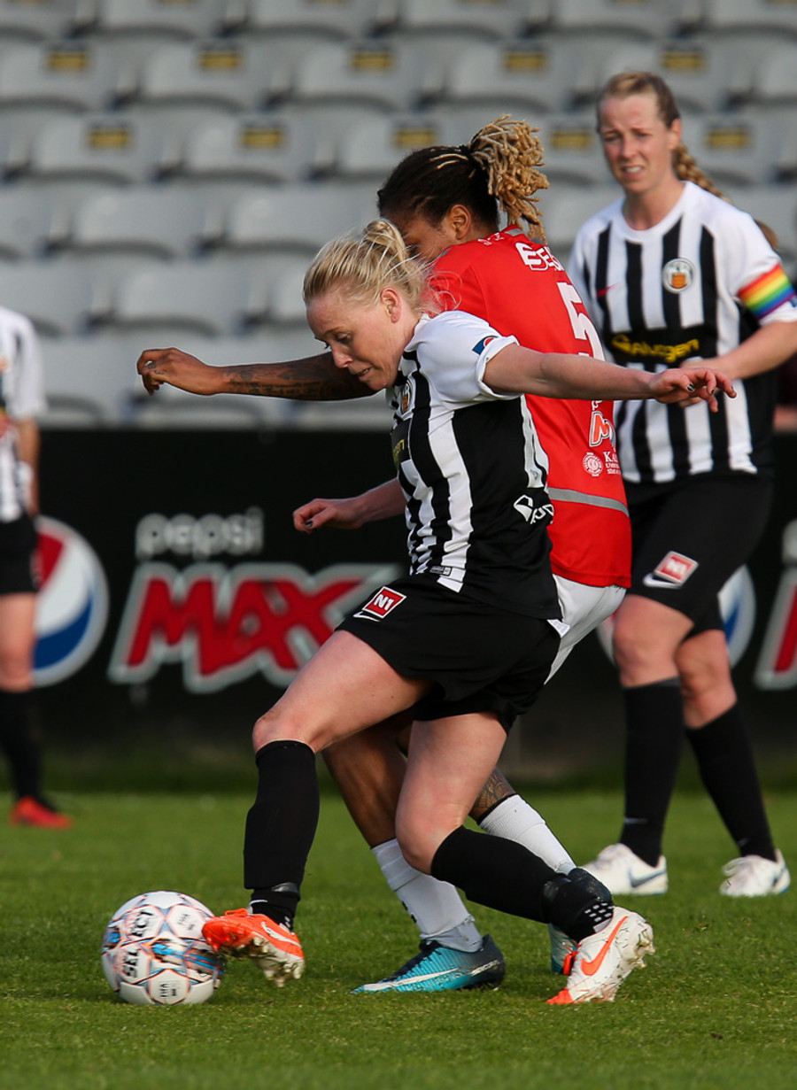 Hrafnhildur var annað hvort með geggjaða björgun eða algjöra töffara stæla. Fékk boltann með mann alveg ofan í sér og reddar því með að taka boltann til hliðar og hreinsa.