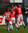 "JA HÉRNA HÉR!" Er hrópað í blaðamannastúkunni. Betsy tekur geggjað hlaup og stingur boltanum inn í teiginn þar sem Shea býður og getur ekki annað en skorað!