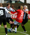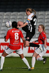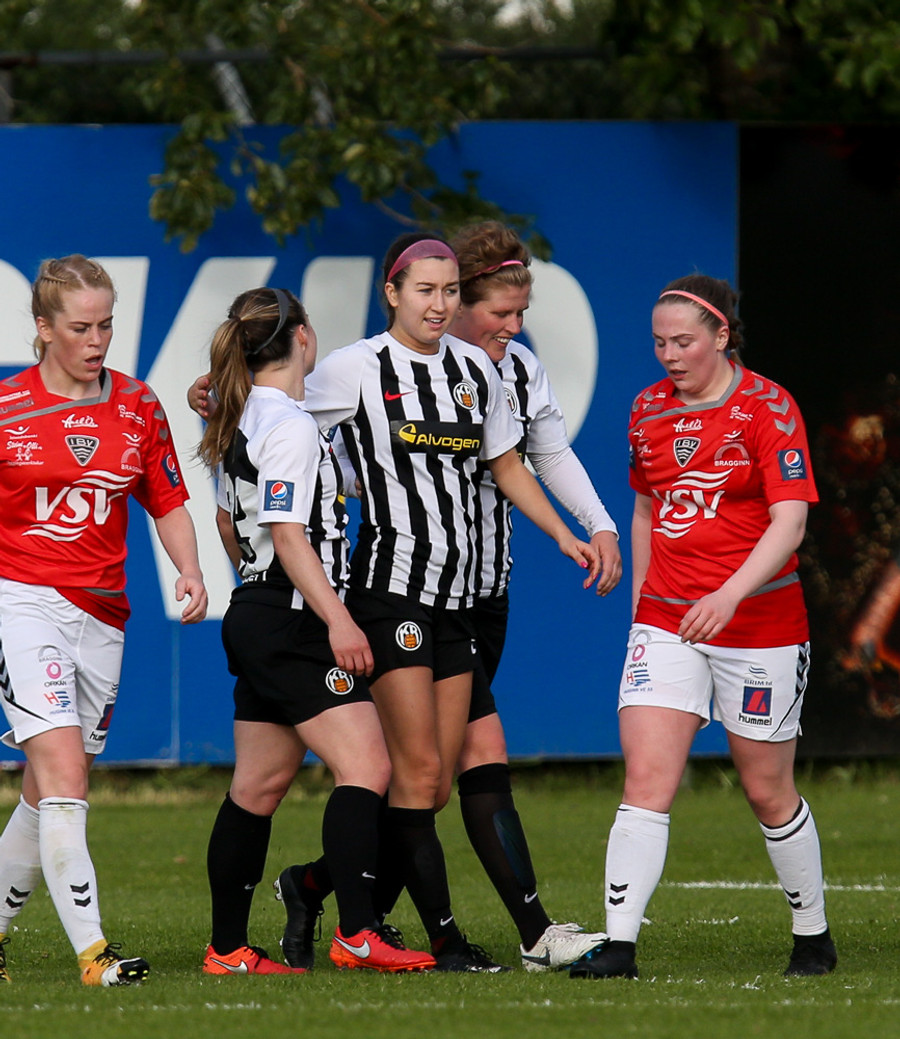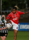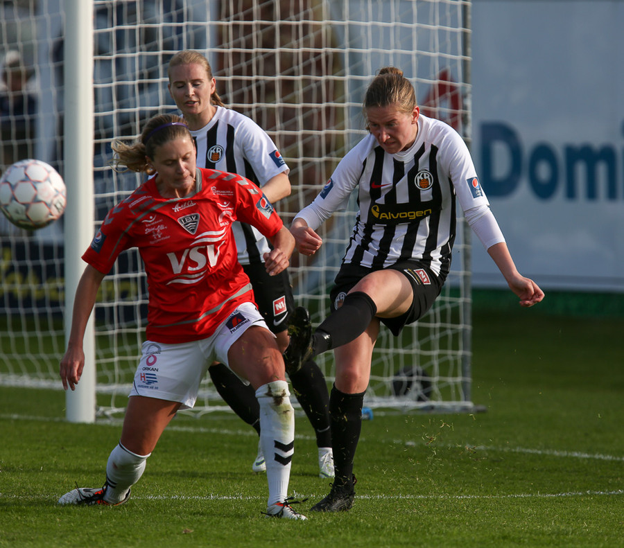 DAUÐAFÆRI! Hitt var bara semi-dauða færi, þetta verðskuldar hástafina. Aftur Betsy í góðri stöðu og aftur er það Adrianne sem nær að stoppar skotið