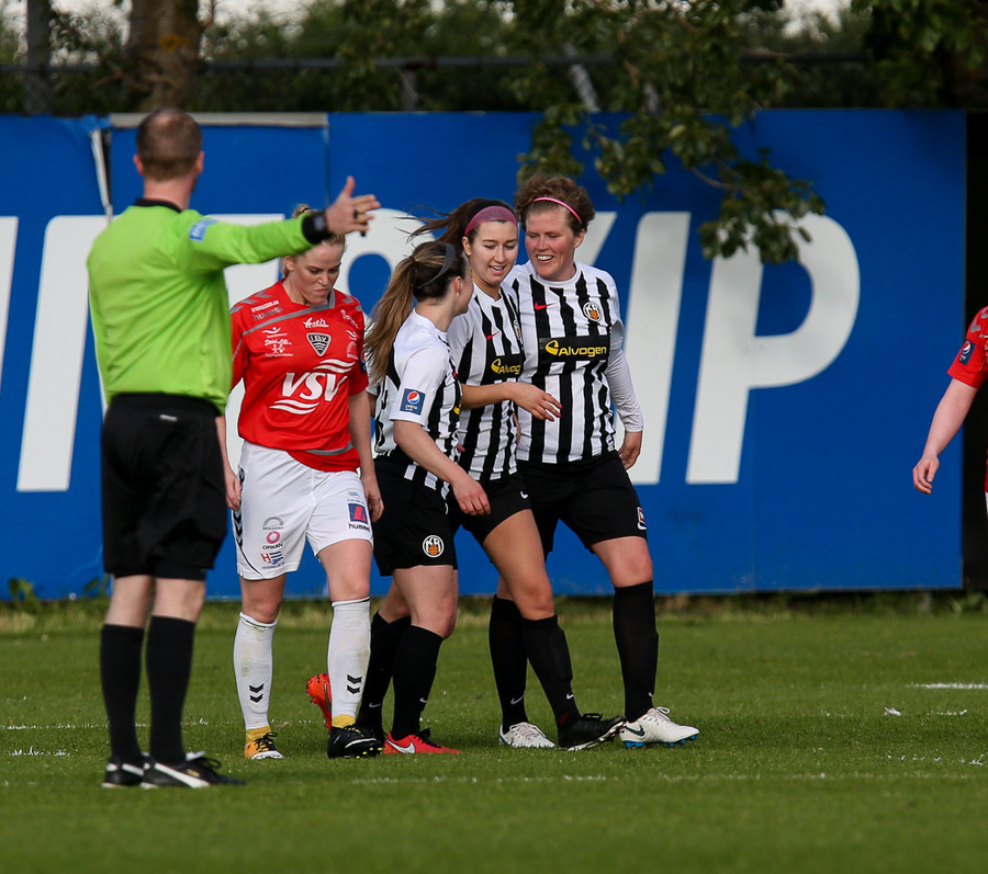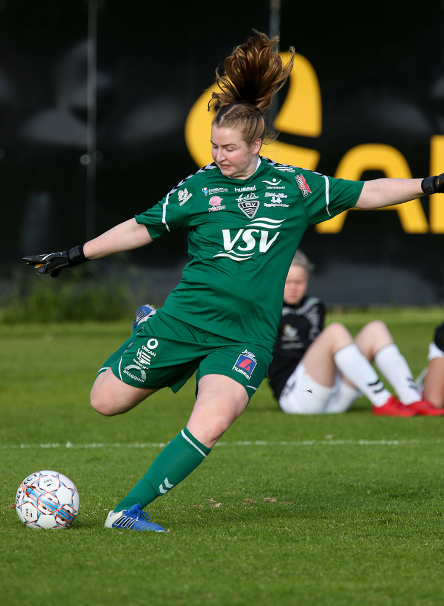 Sigríður gerir það að fyrsta verki eftir að hafa komið inn á að setja aukaspyrnuna yfir.