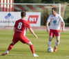 Óskar Elías með góðan bolta inn í teig, Sveinn Elías tekur við honum og setur boltann út á Jónas sem er í góðri stöðu í teignum en skýtur beint í varnarmann