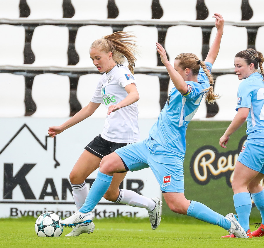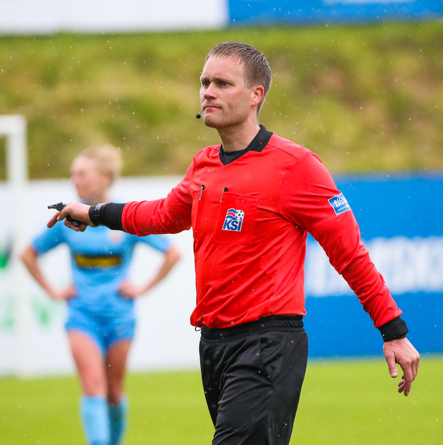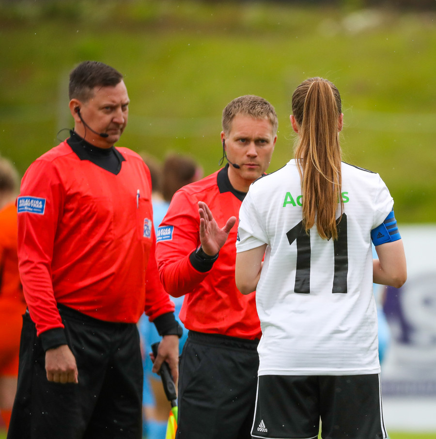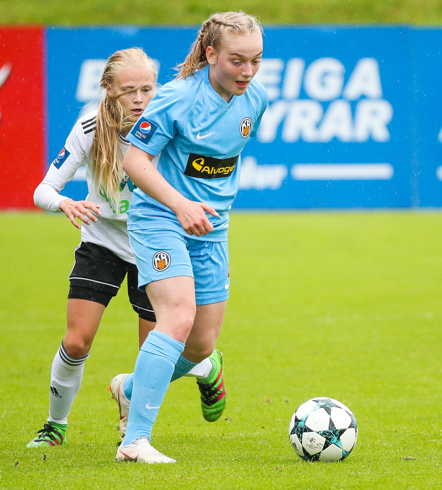 VÁÁ Þórey Björk er allt í einu kominn ein í gegn en Ingibjörg er með geggjað úthlaup og er á undan í boltann og hreinsar honum frá. Mér sýndist Þórey vera rangstæð en ekkert var dæmt.