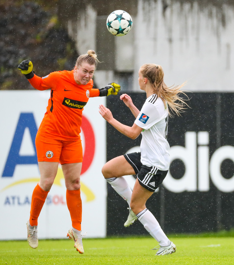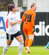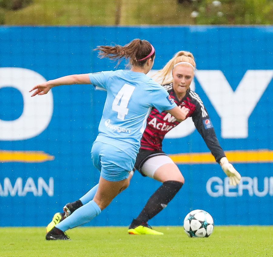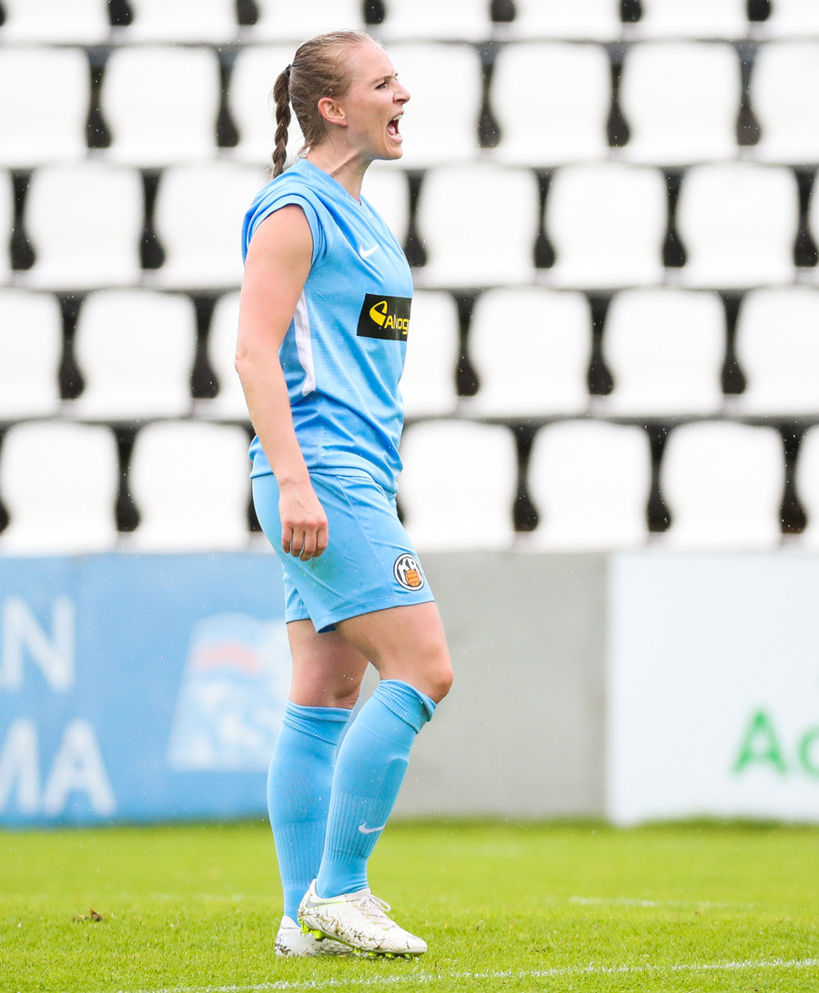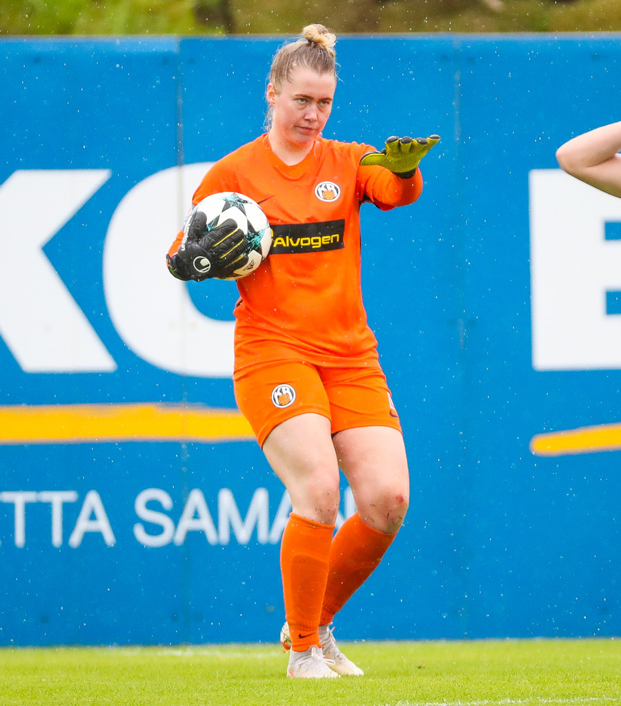 Shea Connors reynir langskot á Anítu sem að Aníta grípur auðveldlega. Látbrögð Sheu voru eins og hún væri að fara skora þarna en þetta var aldrei hættulegt skot.