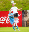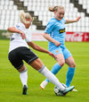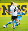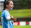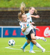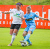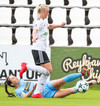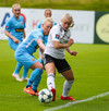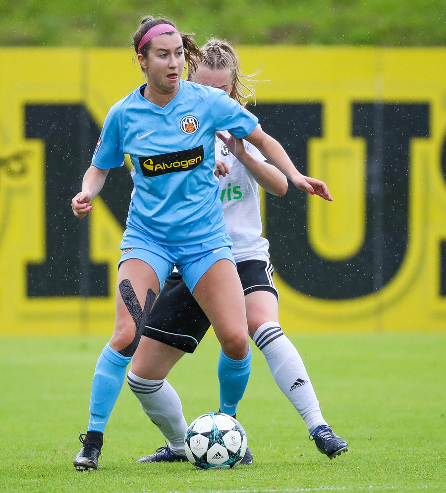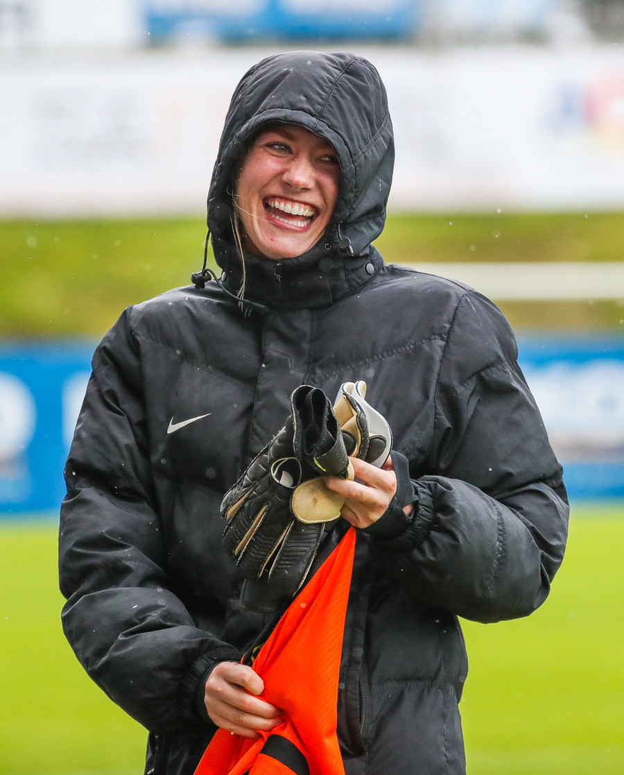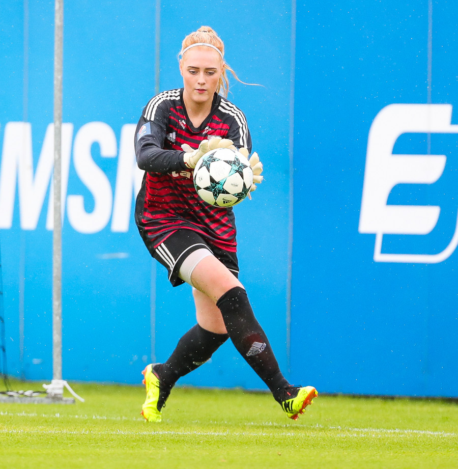 Shea Connors reynir langskot á Anítu sem að Aníta grípur auðveldlega. Látbrögð Sheu voru eins og hún væri að fara skora þarna en þetta var aldrei hættulegt skot.